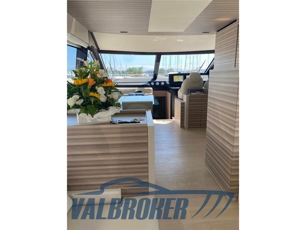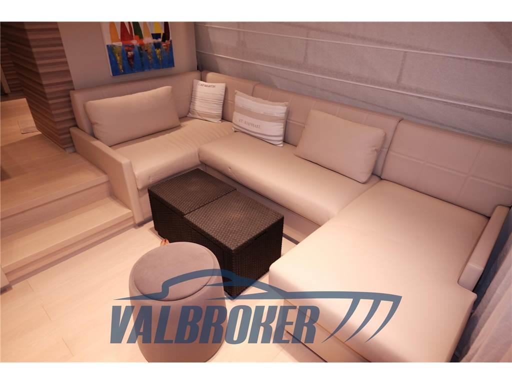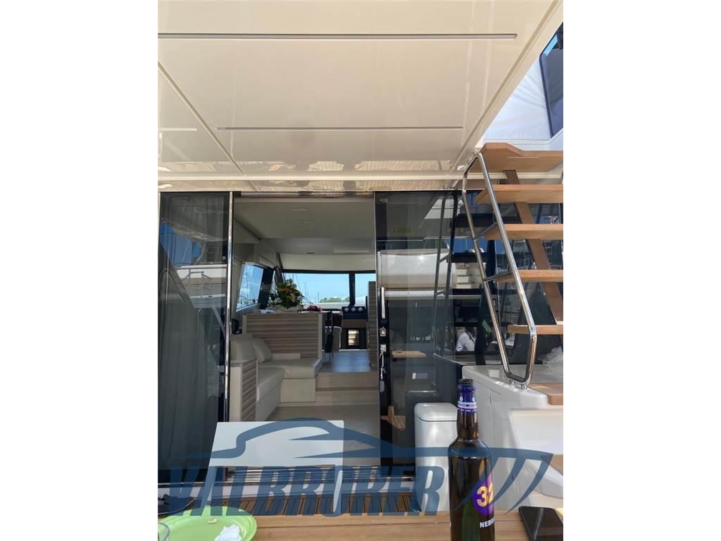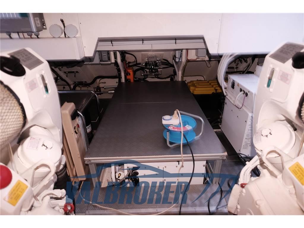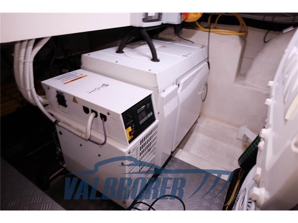 Aria condizionata (Tropicale (salone e cabine + crew cabin)), BBQ/ Grill (sul fly Gaggenau), Boiler (bivalente), Cucina, Cuscineria completa, Cuscineria fly, Dissalatore (140 litri ora), Fornello, Frigorifero esterno (50l su fly,), 2 Frigorifero interno, Ghiacciaia, ICE Maker, Impianto TV, Lavastoviglie (Siemens), Lavatrice, Pavimento interno in legno (chiaro in salone nuovo 2023), Stereo (Fusion), Telecamera, Telo Copertura Fly, 3 TV, 4 WC marino elettrico, gradini verso il fly in teak, lavandino su fly, radiatore ad olio e un deumidificatore al'l interno da 16 gradi e umidità 50-55%. Un altro radiatore ad olio in sala macchine. Copertura (cagnaro) nuova resistenza 60 nodi di vento, tavolo a prua trasformabile in prendisole, predisposizione impianto illuminazione led multicolor su nome barca