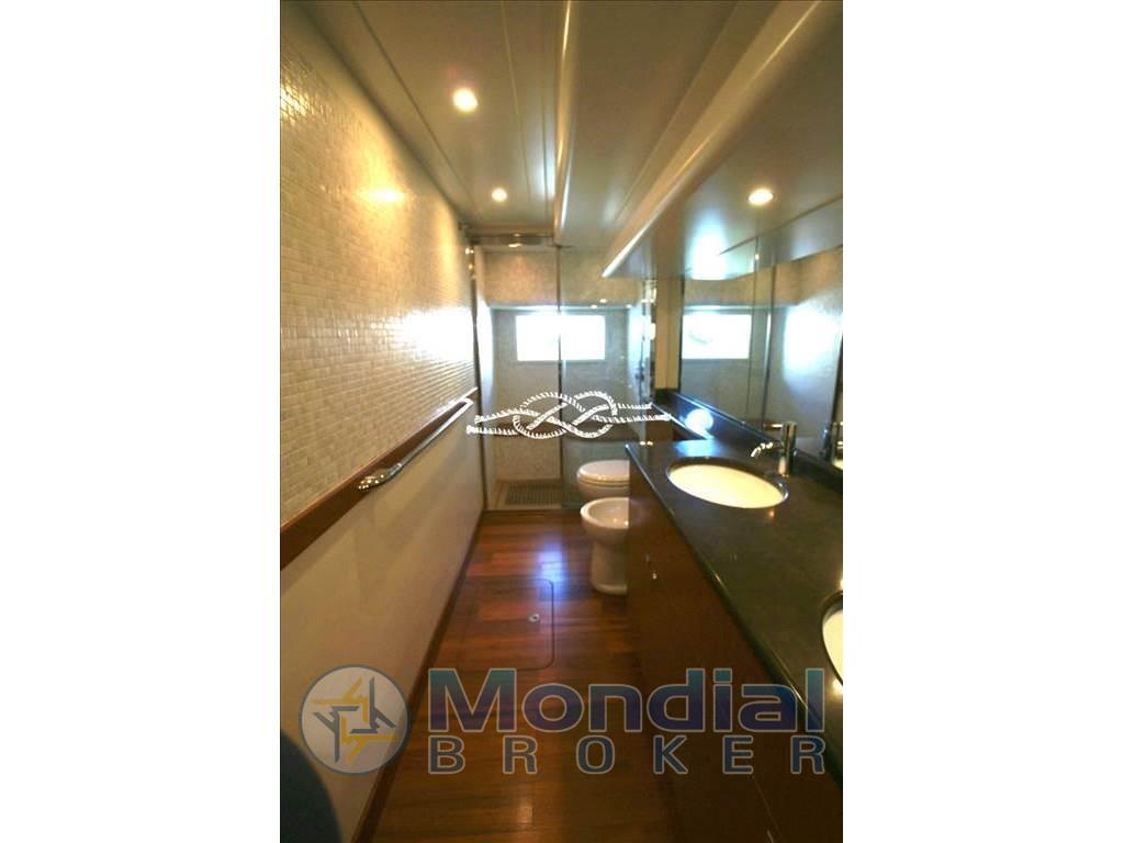 Cabina armatoriale a centro barca con letto matrimoniale e piccola cabina armadio, bagno a tutto baglio con doccia separata - cabina Vip con letto matrimoniale e bagno - cabina ospiti con due letti in piano - cabina ospiti singola - bagno ospiti - due cabine equipaggio singole - bagno equipaggio.