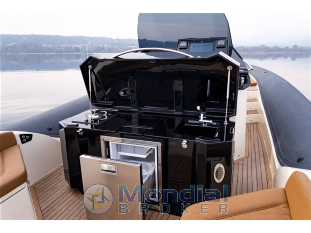 TAGLIERE E LAVELLO ESTERNO SOTTO LA SEDUTA DI GUIDA CON FRIGORIFERO A CASSETTO DA 62LT POSTO FRONTE DINETTE DI POPPA,