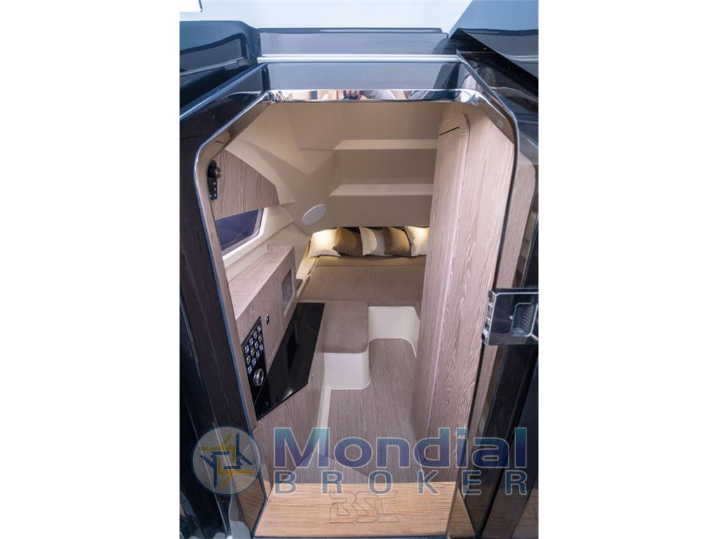 ALLESTIMENTO CABINA COMPLETO DI CUSCINERIA, LETTO BIPOSTO, VETRI SCAFO E MOBILIO IN ESSENZA,
