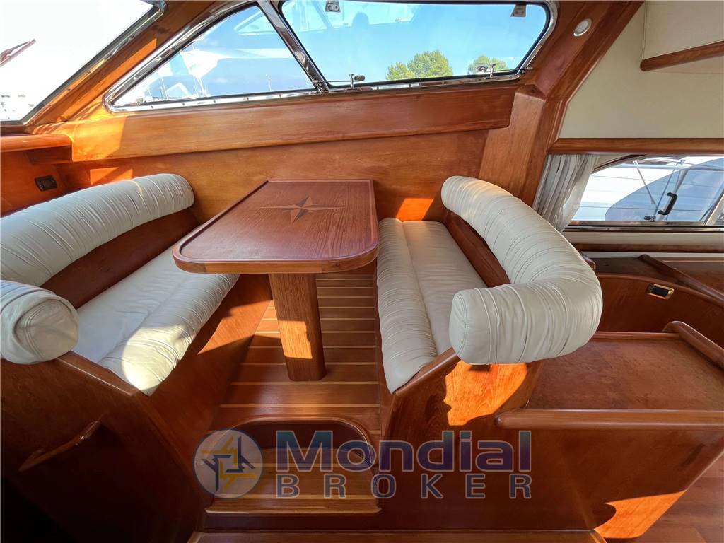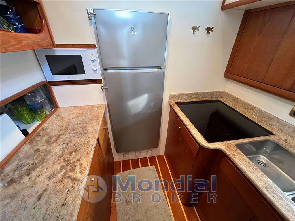 L’imbarcazione dispone di tre cabine. La cabina armatoriale, situata a prua, offre un ampio spazio con letto matrimoniale, spaziosi armadi e un bagno privato en-suite. Le due cabine ospiti aggiuntive, ciascuna con letti singoli, hanno accesso al bagno dedicato. Il salone principale è un'accogliente area open space completa di divani, tavolo da pranzo e una cucina completamente attrezzata.