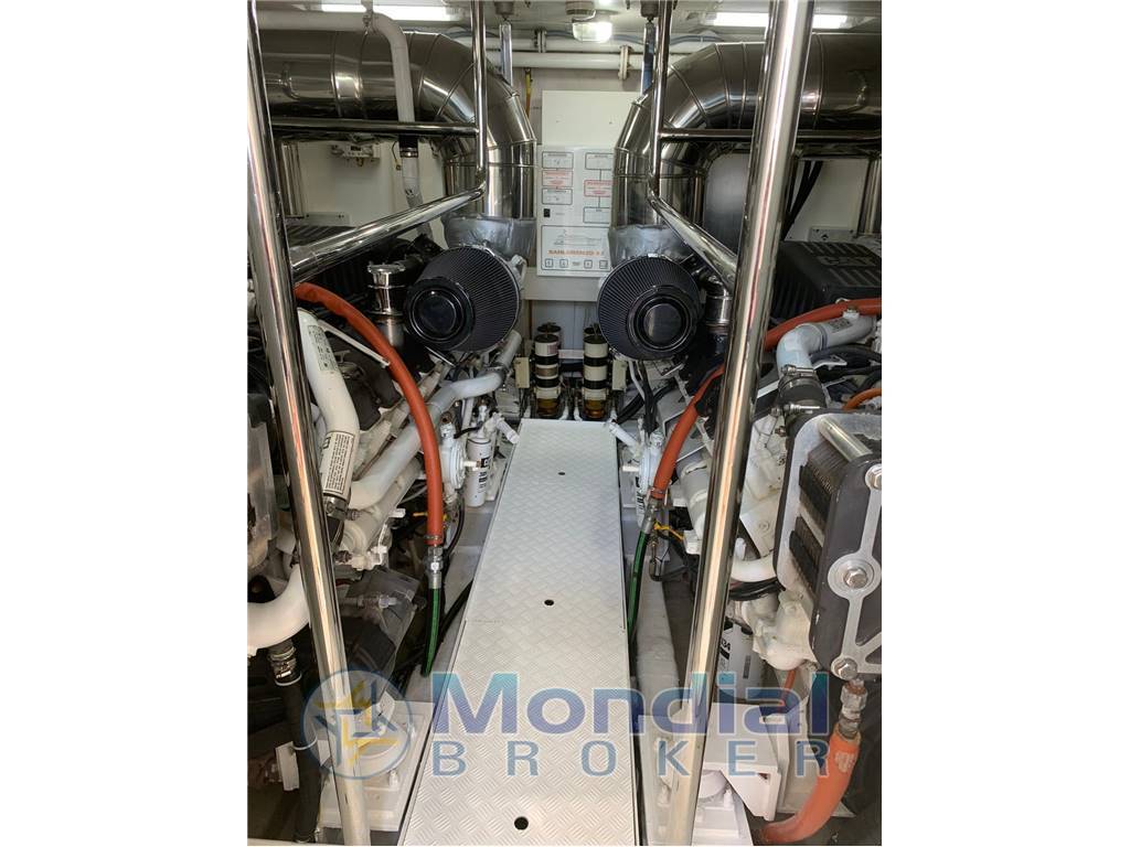 Allarme motore, Allarme sentina, 2 Ancora, Bocche di Lupa, Camminamenti laterali in teak, Doccia esterna, Doppia timoneria, Elica di poppa - stern thruster, Elica di prua - bow thruster, Faro orientabile, Flap idraulici (N°2), Impianto antincendio, Impianto Aria Compressa, Indicatori Flaps, Lavaggio catena, Luci di cortesia, Luci subacquee, Passerella (IDRAULICA TELESCOPICA), Piattaforma (TENDER LIFT), Pompa di sentina automatica, Pompa di sentina manuale, Porta ingresso, Pozzetto Teak, Presa 220V banchina, Presa acqua banchina, Raddrizzatore, Ripetitore strumentazione, Rollbar, Salpa Ancore Elettrico, Scaletta da bagno, Selle per Tender, Stabilizzatori (ZERO SPEED), Tavolo pozzetto, Tavolo Salone Abbattibile, Tromba, 2 Winch tonneggio di poppa, Winch tonneggio di prua.