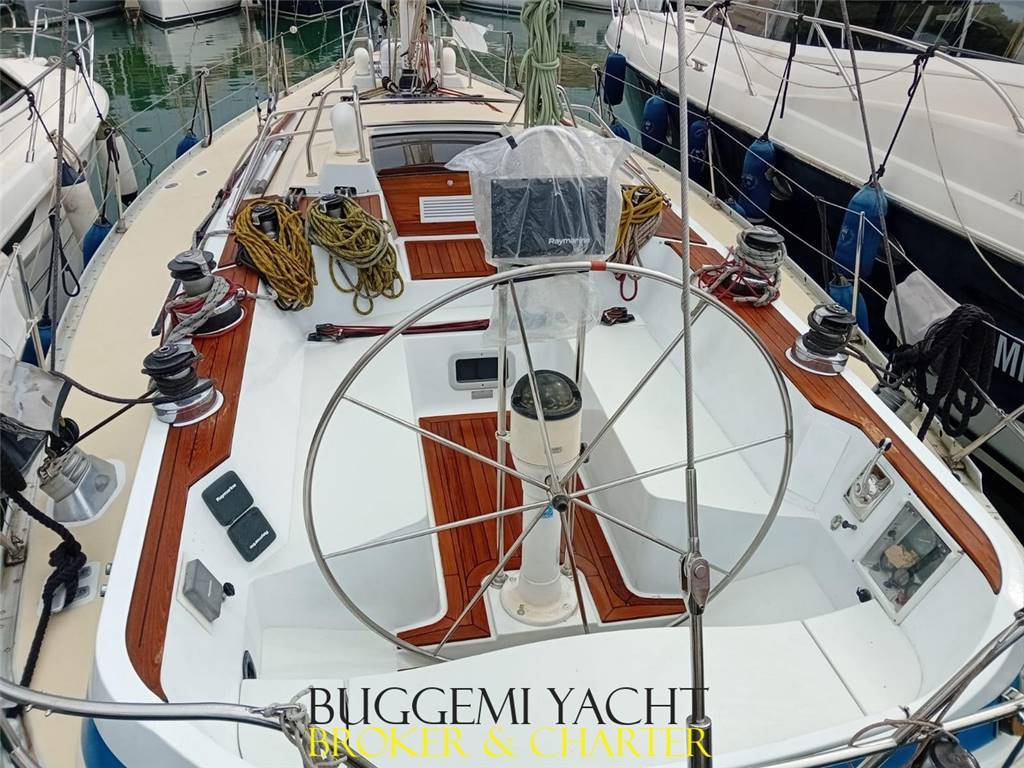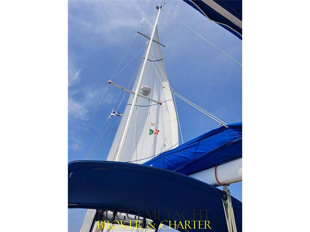 Vele seminuove Randa dacron steccata con 3 mani di terzaroli ( anno 2021), Genoa dacron avvolgibile (anno 2022), rollafiocco nuovo C2 Bamar ( 2024),Tormentina dacron con strallo amovibile, winche elettrici, totale winches 8 self tailing, Albero con 3 ordini di crocette con stralli volanti, albero sbarcato nel 2024 e revisionato con sostituzione di tutta la cavetteria interna, sartiame spiroidale originale tutto controllato nell'occasione, ancora rispetto con catena, dotazioni di sicurezza con 8 giubbotti salvataggio autogonfiabili, mod. Skipper 150 N, fuochi/razzi scad. Fine 2026, cassetta P.S. dot. Italiana oltre le 12 miglia, scaletta bagno, zattera autogonfiabile scad. luglio 2025, anulare con cima di salvataggio, cime di vario diametro di rispetto, binocolo, bimini top, spray hood, passerella, scaletta bagno,