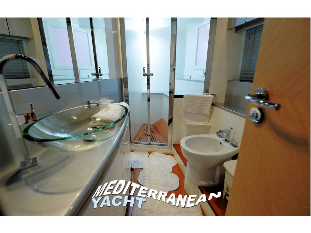 - Cabina armatore a centro barca con letto matrimoniale e bagno, accesso dal salone