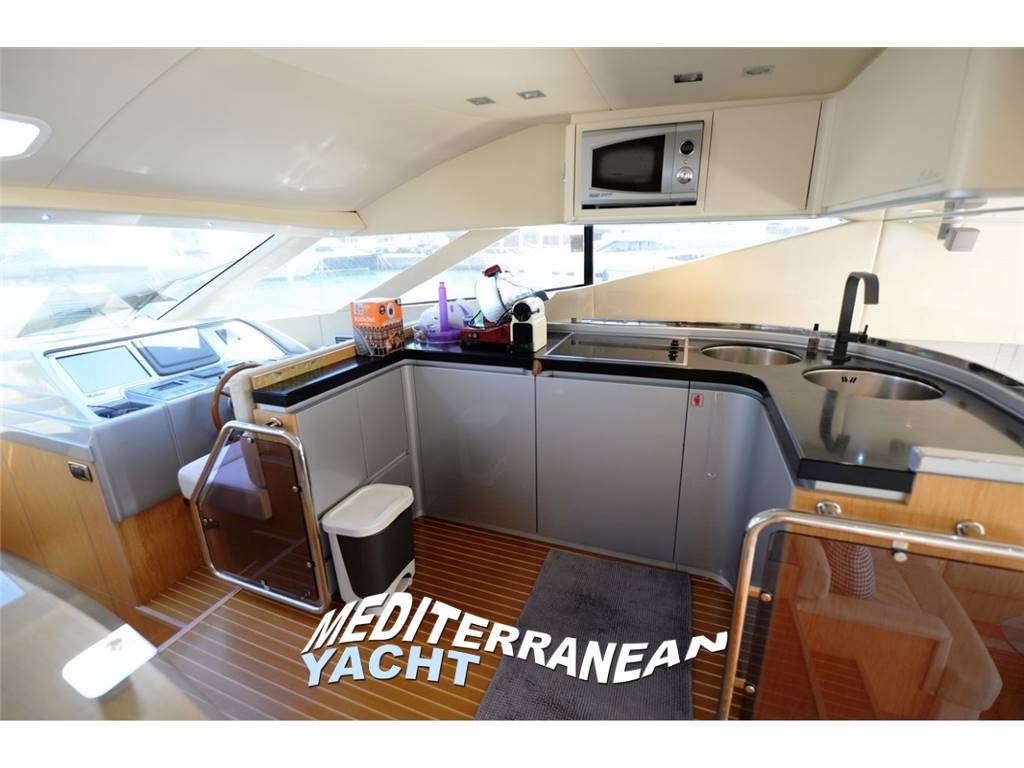 - Timoneria e cucina contrapposta con piano cottura in vetroceramica TECNOWIND, doppio lavello inox, due frigoriferi con cella freezer VITRIFRIGO, forno combi DE LONGHI e cappa aspirante