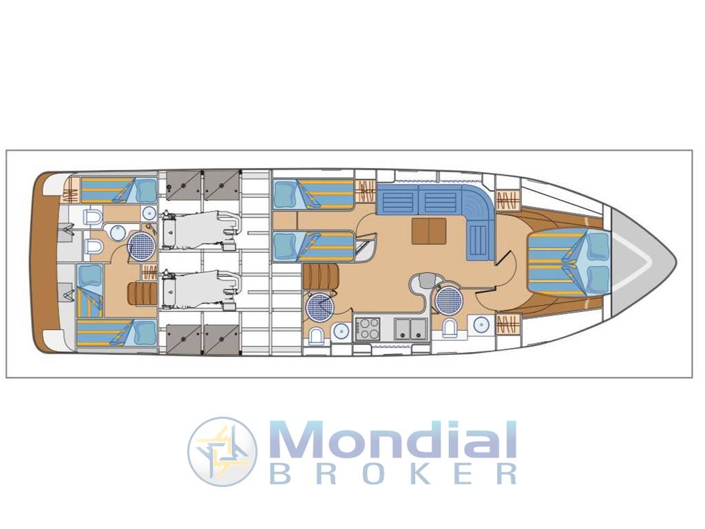 Generatore - climatizzatore - elica di prua - passerella idraulica - tendalino scomponibile chiusura pozzetto - cuscinerie sedute pozzetto - cuscinerie prendisole a prua - scaletta bagno