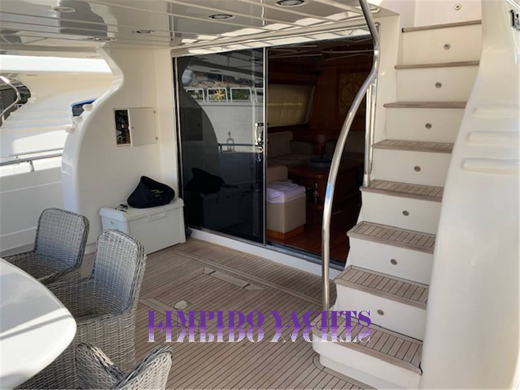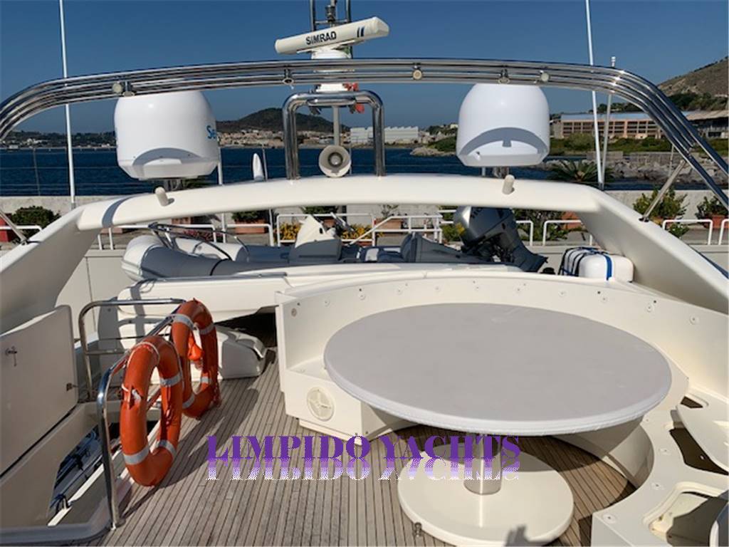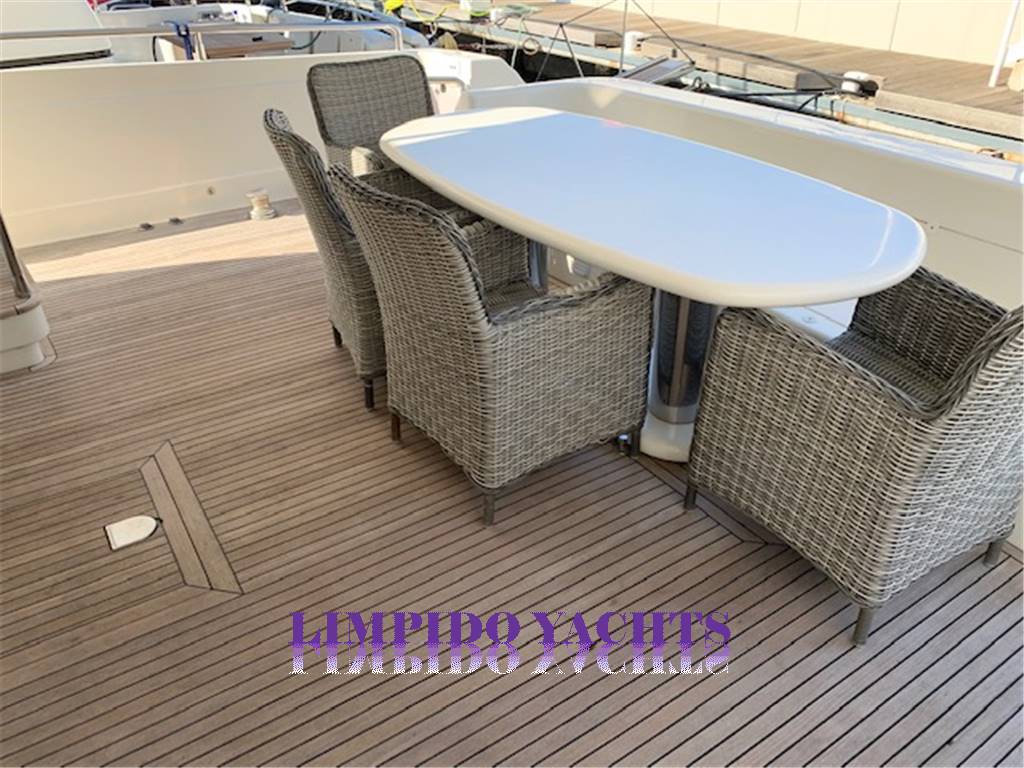 - BIMINI TOP FLY- - POZZETTO E COPERTA IN TEAK MASSELLO - - GRUETTE PER VARO TENDER SUL FLY -- PASSERELLA IDRAULICA TELESCOPICA -- MOBILE CUCINA SUL FLY CON LAVELLO, BBQ E FRIGO -- 2 WINCH A POPPA - - CASSAFORTE - - DOTAZIONI DI BORDO