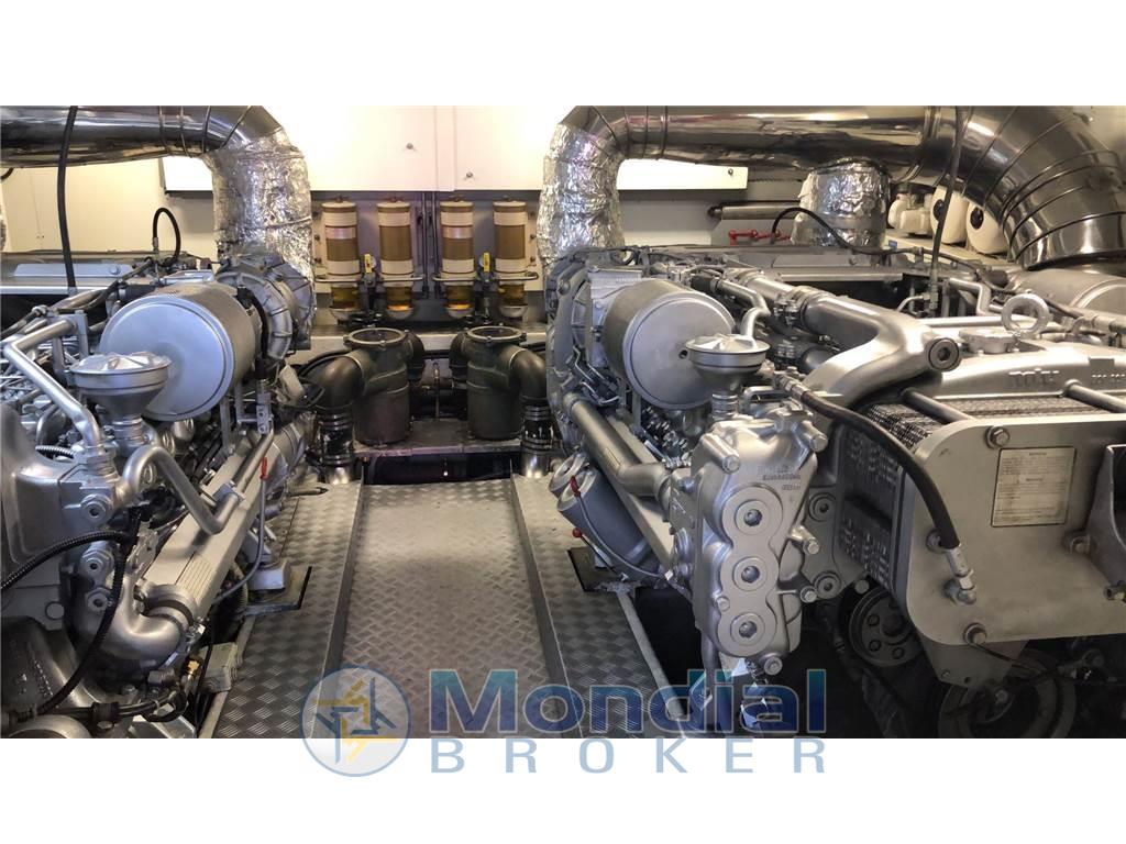 revisione straordinaria gruetta fly - revisione straordinaria pedana di poppa tender lift - revisione straordinaria passerella - revisione straordinaria timoneria - revisione impianto antincendio - carena portata a zero - sostituzione delle prese a mare - revisione scambiatori di calore - nuovo teak sintetico per camminamenti laterali e prua - sostituzione pompe aria condizionata - sostituzione di tutti i TV - sostituzione BBQ fly - nuova moquette - sostituzione parabrezza fly - sostituzione motore frigo - istallazione cantinetta vini - nuovi riser motori - sostituzione strumentazione MTU (sia plancia che fly).