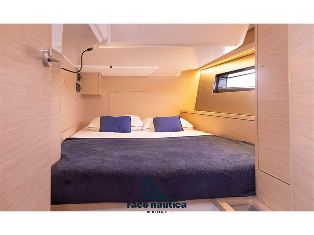 Ocean version, full batten mainsail and self-tacking jib in Dacron, mainsail sheet on deckhouse with ropes (no traveller), 2 winches on deckhouse with organisers and stoppers, continuous reefing system from cockpit, bow roller, fixed backstay, 1000W remote-controlled windlass, lazy bag, Lazy Jacks, Rigid vang, 2000W battery charger and inverter socket, Ambiance Signature, Third bathroom with shower, Movable bulkhead in the bow, Yanmar 57HP Saildrive engine, Tunnel bow thruster, Triton 2‘ multifunction on the left, 10’ GPS multifunction, Autopilot with NAC3 control, VHF V20S, Zeus 3s 12" GPS upgrade on left and right of instrument panel, VHF V-60B with integrated AIS transmitter and receiver, WR10 remote control, T50 electric winch on port side deckhouse for mainsail halyard, Extra porthole in cockpit for aft cabin, Stainless steel bow protection, 20 kg anchor with 30 m chain and 40 m three-strand rope, 6 fenders, 3 mooring ropes, difference for entire 50 m chain instead of rope, dinette table convertible into bed, Classic cushions, Outdoor barbecue and sink in aft seating area, Additional water tank in bow, 4 electric toilets.