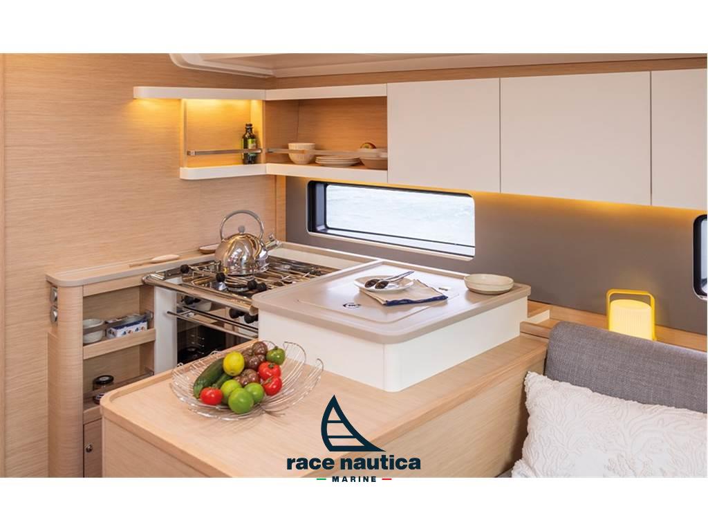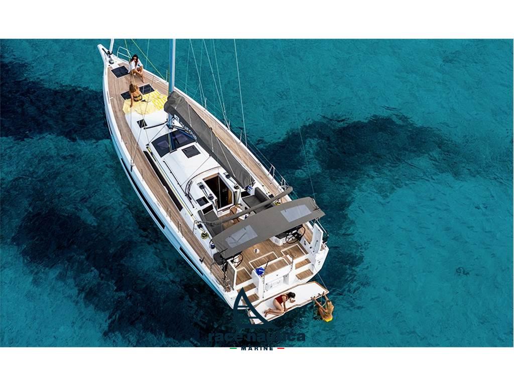 Versione Ocean, Randa full batten e fiocco autovirante in Dacron, Scotta randa sulla tuga con cime (no trasto), 2 winchs sulla tuga con organizers e stoppers, Sistema pesa continua terzaroli dal pozzetto, Delfiniera di prua, Paterazzo fisso, Salpaancore da 1000W con comando remoto, Lazy bag, Lazy Jacks, Vang rigido, Presa caricabatterie ed inverter da 2000w, Ambiance Signature, Terzo bagno co,pletto di doccia, Paratia mobile a prua, Motore Yanmar 57HP Saildrive, Elica di prua a tunnel, Multifunzione Triton 2" uno a sinistra, Multifunzione GPS 10", Pilota automatico con controllo NAC3, VHF V20S, Upgrade GPS Zeus 3s da 12" a sinistra ed a destra sul porta strumenti, VHF V-60B con integrato AIS trasmettitore e ricevitore, Telecomando WR10, Winch elettrico T50 sulla tuga a sinistra per drizza randa, Oblò extra nel pozzetto per cabina di poppa, Protezione prua in inox, Ancora da 20KG con catena 30mt e cima 40mt a tre trefoli, 6 parabordi, 3 cime d'ormeggio, Differenza per tutta catena 50mt al posto della cima, Tavolo dinette trasformabile in letto, Cuscineria classic, Barbecue esterno e lavandino seduta di poppa, Serbatoio addizionale a prua dell'acqua, 4 WC elettrici.