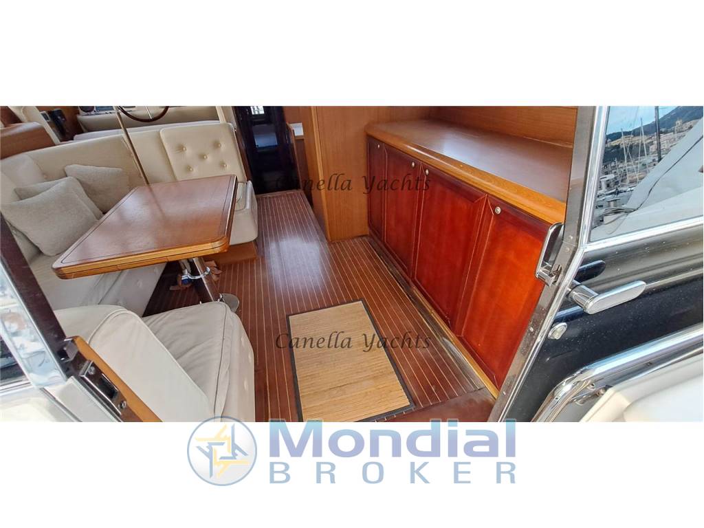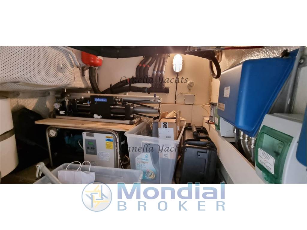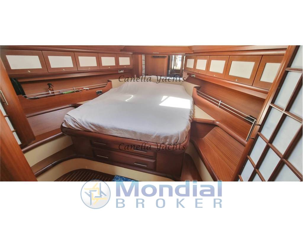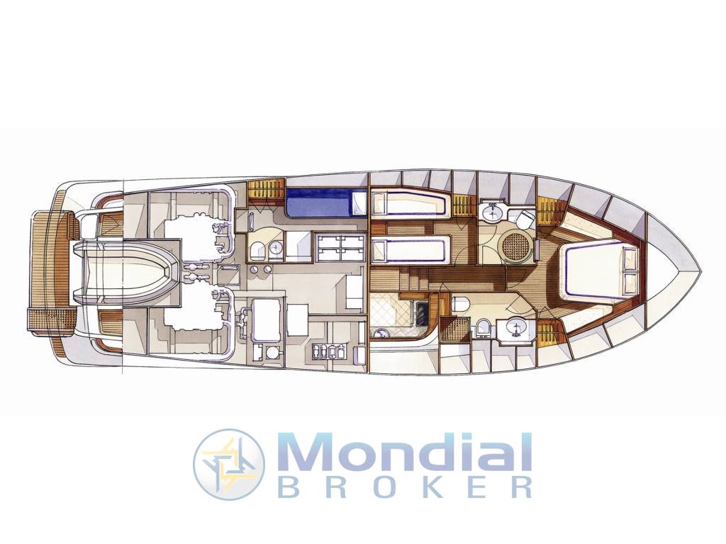 Ampio salone con dinette e cucina separata, cabina armatore a prua con ampio bagno e doccia separata, cabina ospiti a due letti separati con bagno e doccia - cabina equipaggio con accesso dal pozzetto.