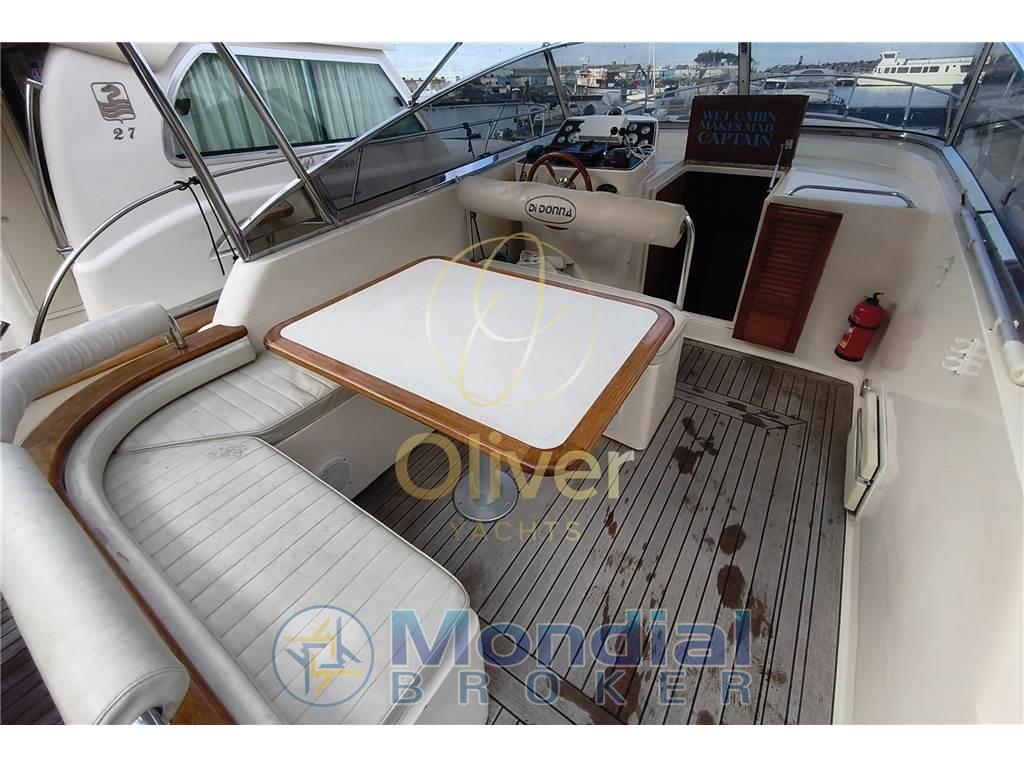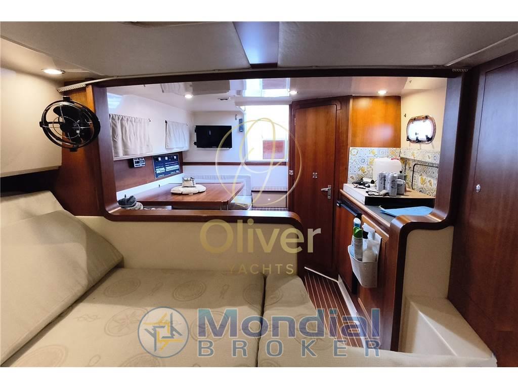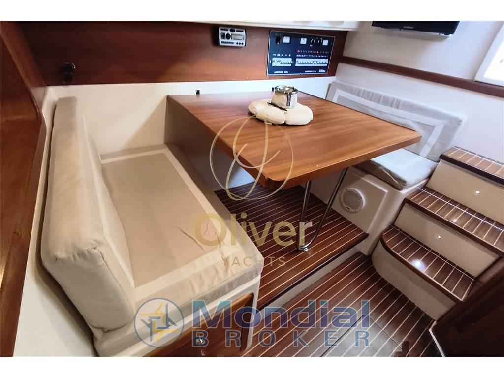 Il cockpit è organizzato in modo razionale, con dinette esterna accogliente, ideale per pranzi, aperitivi e vita a bordo. La postazione di guida è protetta, ben visibile e funzionale, pensata per una conduzione sicura anche in equipaggio ridotto.