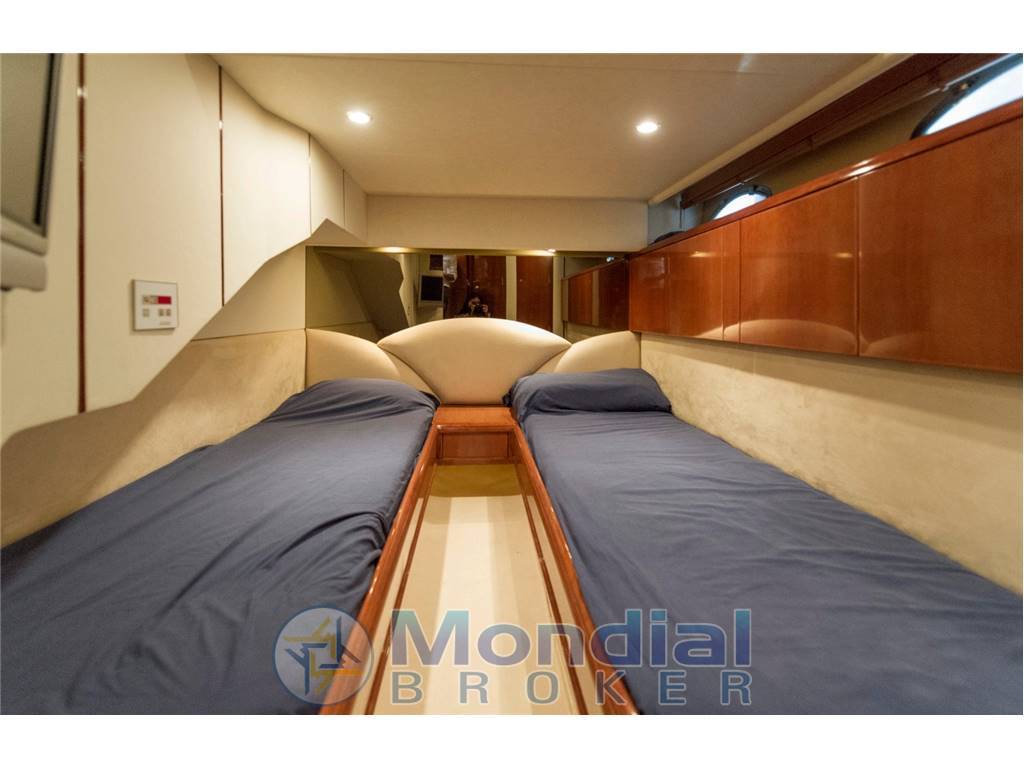 La cabina dell'armatore, situata nella parte anteriore dell'imbarcazione, è particolarmente spaziosa e ariosa; lo specchio dietro il letto amplifica lo spazio e troviamo ampi spazi di stoccaggio insieme ad un bagno privato completamente attrezzato con lavabo, WC e doccia.