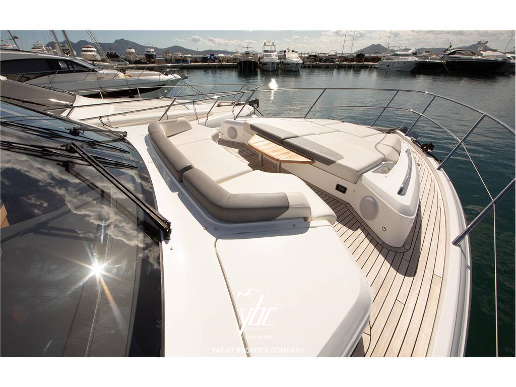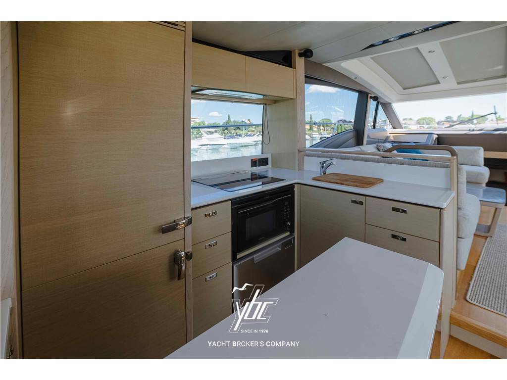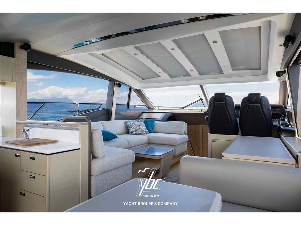 Il Princess V60 si distingue per il suo design raffinato e per spazi studiati per offrire comfort e convivialità. L’ampio pozzetto accoglie gli ospiti con un comodo divano a U, tavolo in teak e un grande prendisole ombreggiato da una tenda elettrica, ideale per rilassarsi a bordo. La dinette, estremamente luminosa grazie alle ampie vetrate e all’hardtop, si integra alla perfezione con la cucina a poppa, completa di ogni comfort e dotata di un pratico frigorifero a colonna. Una finestra apribile collega direttamente la cucina con il pozzetto, creando un ambiente unico. A dritta, un tavolo da pranzo con divanetto completa la zona pranzo, mentre più avanti un grande divano a C guarda verso un mobile con TV da 50”. La postazione di guida, con il caratteristico finestrino elettrico Princess, assicura un’ottima ventilazione e un controllo totale dell’imbarcazione.