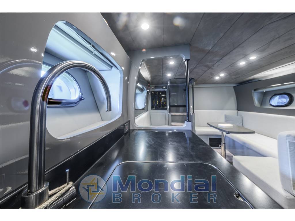 Aria condizionata – Bowthruster – Flaps – Vhf – Elettronica Furuno – Generatore Onan 8 kw (1440 hrs) – Piattaforma bagno – Cuscineria completa – Doccetta esterna – Verricello – Asta bandiera in fibra di carbonio – Bimini con pali in carbonio – Sistema Audio con speakers interni ed esterni – Seabob