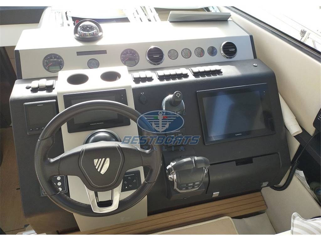 Joystick di manovra, Bussola, Contamiglia, Radio VHF, Ecoscandaglio, Contagiri, GPS, comandi Hard top, comandi Flaps con indicatori in pancia, Angolo barra, Pilota automatico, Pompa di sentina automatica, Pompa di sentina elettrica, Verricello con ancora e catena, bocchette aria condizionata, presa 12V