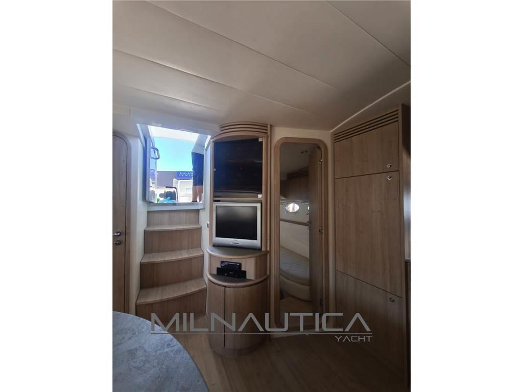 Allarme motore, Allarme sentina, Elica di prua - bow thruster, Flap idraulici, Hard top, Indicatori Flaps, Passerella, Pompa di sentina automatica, Pozzetto Teak, Presa 220V banchina, Salpa Ancore Elettrico, Tavolo pozzetto.