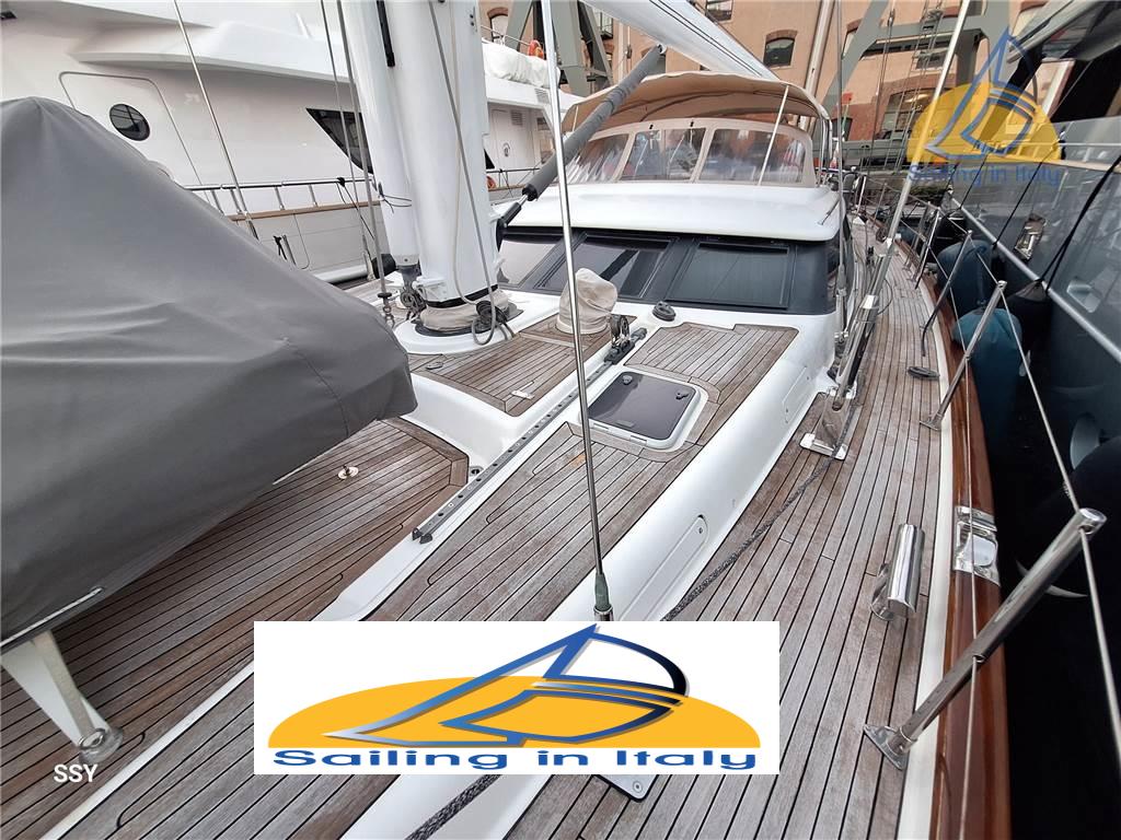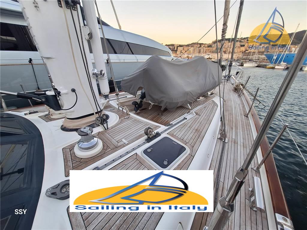 Vele, rigging, alberi & coperta : • Randa: Doyle Membrane (2018) • Genoa: Doyle Membrane (2018) • Cime/cordami: Gottifredi Maffioli Dyneema Ultra (2020) • Winch Lewmar (tutti self-tailing): 2 × 88/3 SESTS a 3 velocità elettrici (primari) • 2 × 77/2 SESTS a 2 velocità elettrici (secondari) • 1 × 66 SESTS elettrico (drizza randa) • 1 × 58 CST (drizza yankee/trinchetta) • 1 × 40 CST (carrello randa) • Salpa-ancora: Lewmar 4000 idraulico • Albero: Hood Stoway con avvolgimento randa idraulico nell’albero e tesabase idraulico nel boma • Avvolgitori: Reckmann idraulici (fiocco e trinchetta) • Idraulica: Navtec (paterazzo e vang idraulici) • Passerella: Besenzoni retrattile idraulica • Bimini: doppi, a copertura timoni e pozzetto ospiti • Sprayhood: su tambuccio principale • Teli laterali: tende parasole/antipioggia su entrambi i lati • Ancore: CQR 66 kg con 100 m di catena da 14 mm - Ancorotto Danforth con 100 m di cima Octoplait 24 mm + 10 m di catena 12 mm • Tavoli pozzetto: 2 unità, ognuno con frigorifero integrato • Intrattenimento • Audio: Linn Classic Home Theatre (interno & esterno) • TV: salone principale + LG 43" in cabina armatoriale • Player: Panasonic DMP-BDT180 Ultra HD 4K CD/DVD/Blu-ray • Satellite: Telesystem TS9000 + antenna satellitare • Audio cabine: Nakamichi Sound Space 3 (cabina armatoriale) Cucina & lavanderia: • Piano cottura: induzione Ariston HotPoint (4 fuochi) + cucina a gas 4 fuochi • Forni: 1 elettrico Smeg + 1 a gas • Frigorifero & freezer: acciaio inox + freezer coibentato • Compattatore rifiuti • Lavastoviglie: Miele • Lavatrice: Sangiorgio F4-LED 7 kg • Asciugatrice: Candy Smart Pro 7 kg • Fabbricatore ghiaccio: Uline 95 con inverter dedicato Tender, toys & sicurezza: • Tender: BWA 4,70 m (2012) con Yamaha 40 HP 4T • Zattere: 2 × 8 posti con sgancio idrostatico Hammar • Sicurezza: 2 moduli recupero MOB Jonbuoy