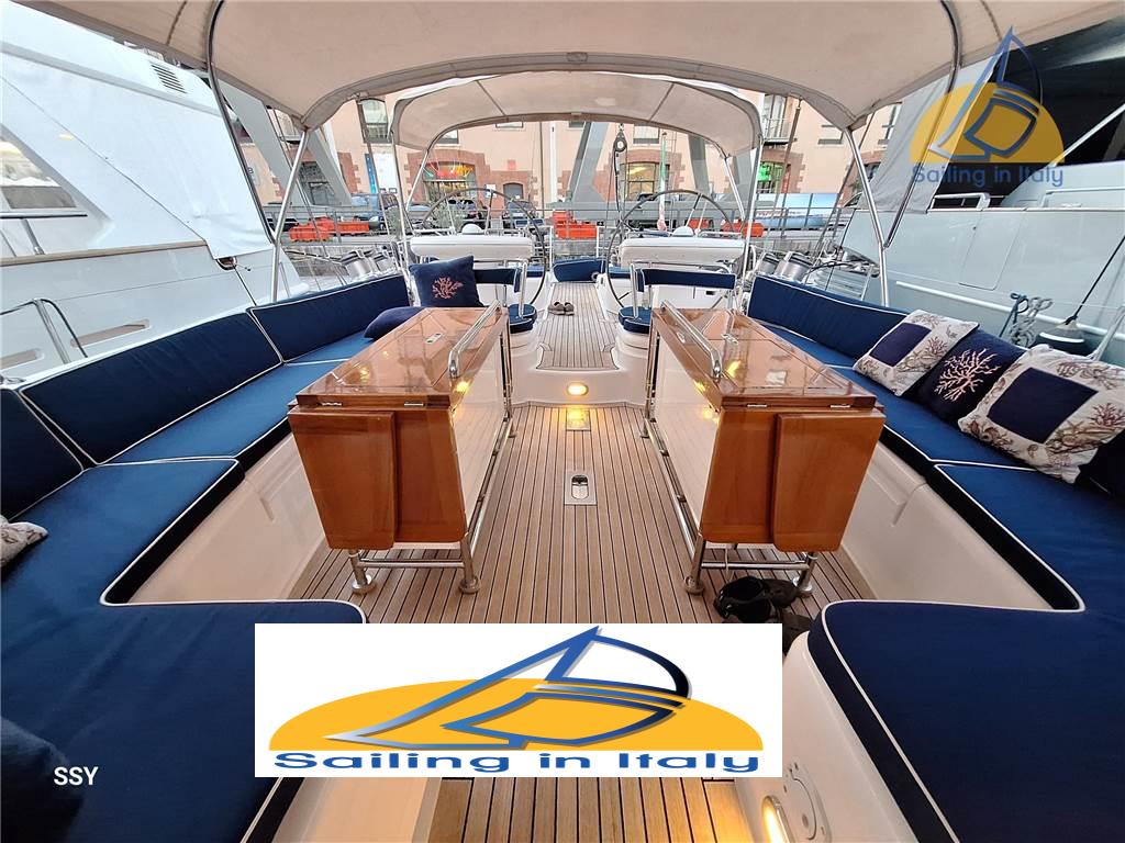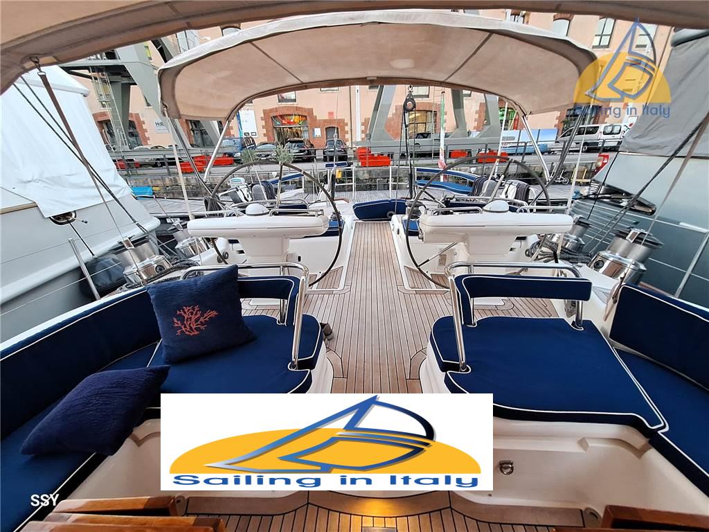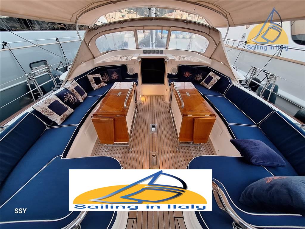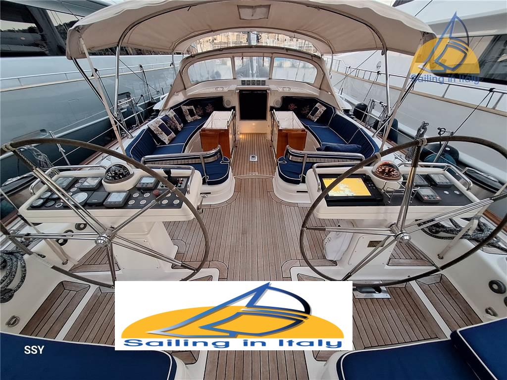 Esterni : La configurazione a doppi pozzetti garantisce grande versatilità: • Le doppie ruote del timone assicurano ottima visibilità e controllo; il piano velico, con randa avvolgibile nell’albero, fiocco e trinchetta su avvolgitore, consente conduzione facile e sicura anche con equipaggio ridotto. A poppa, lo specchio “sugar-scoop” (riverniciato di recente) offre una piattaforma in teak con scaletta bagno in acciaio inox, ideale per il nuoto o per salire sul tender. In dotazione un tender 4,7 m con fuoribordo Yamaha 40 HP, perfetto per esplorazioni costiere o comodi trasferimenti a terra.