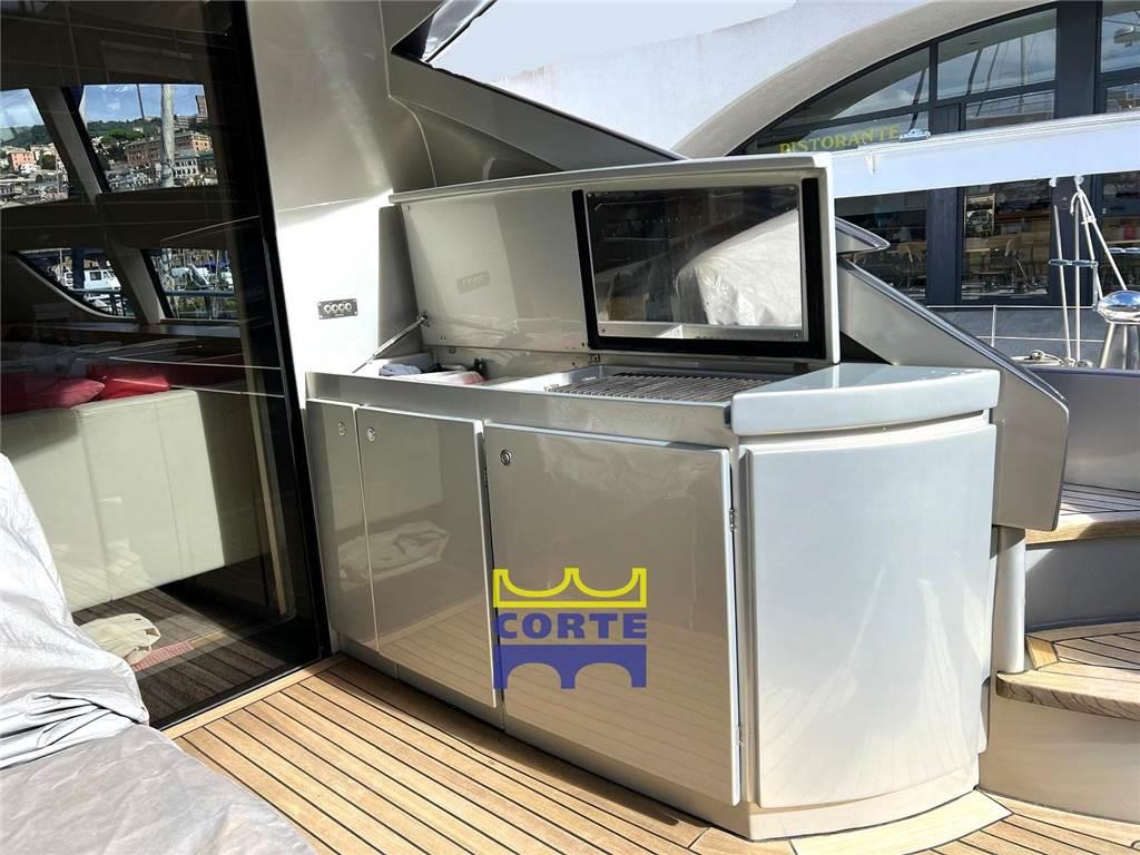 Antenna Satellitare TV (Navisystem 70), Aria condizionata (Condaria 3 C), BBQ/ Grill (in pozzetto), Boiler, Congelatore, Cuscineria di poppa, Cuscineria di prua, Dissalatore (Idromar 180 l/h), Forno, Frigorifero esterno, Frigorifero interno, Impianto TV, 3 Inverter, Lavatrice, Pavimento interno in legno, Piastra in vetroceramica, Prese interne 12v, Prese interne 220v, Telecamera (in sala macchine), TV (43" in salone a scomparsa e cabina armatore), WC marino elettrico, tridata Raymarine nuovo, slitta per tender e moto d'acqua, apertura dinette pozzetto elettro idraulica, pompa acque nere, pompa acque grigie, pompa polivalente, mantenitore di carica generatori, tetto apribile in dinette e in pozzetto