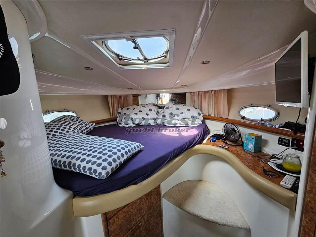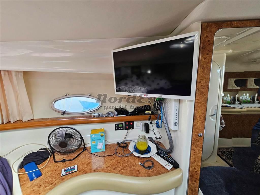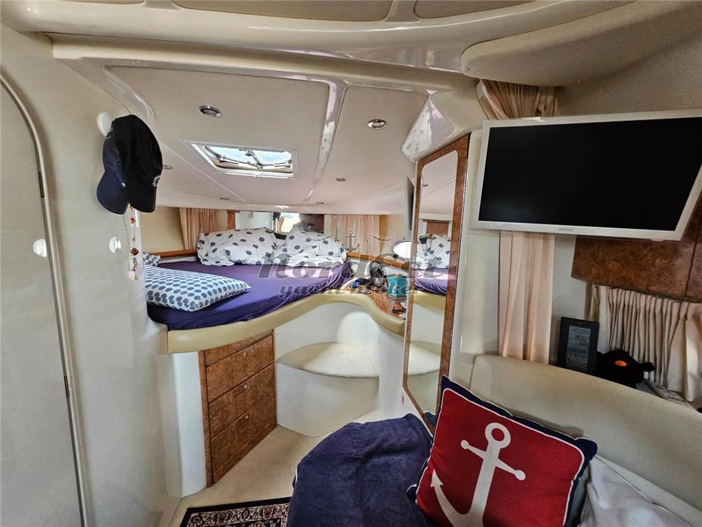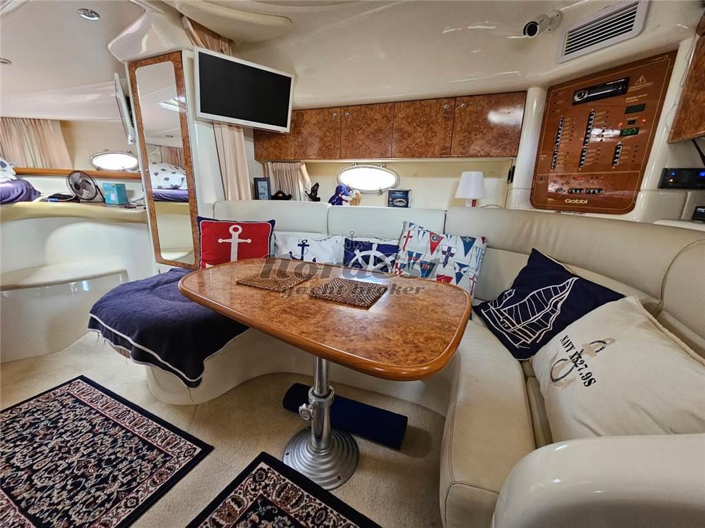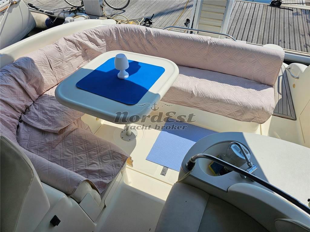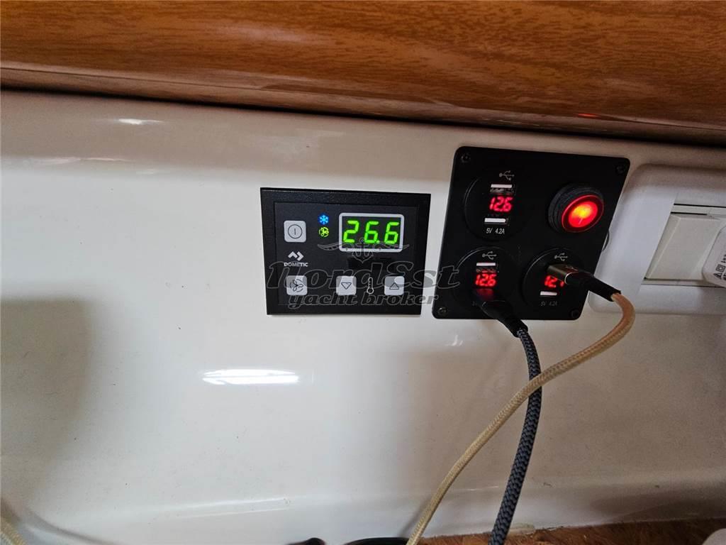 Dotata di aria condizionata, elica di manovra, autopilota, GPS ecoscandaglio di ultima generazione e antenna satellitare. È presente anche una comoda passerella idraulica per l’accesso a bordo. Gli spazi sono ben distribuiti, con due cabine separate, bagno, cucina attrezzata e zona giorno luminosa e accogliente. All’esterno, ampio prendisole e zona relax perfetta per le uscite estive.