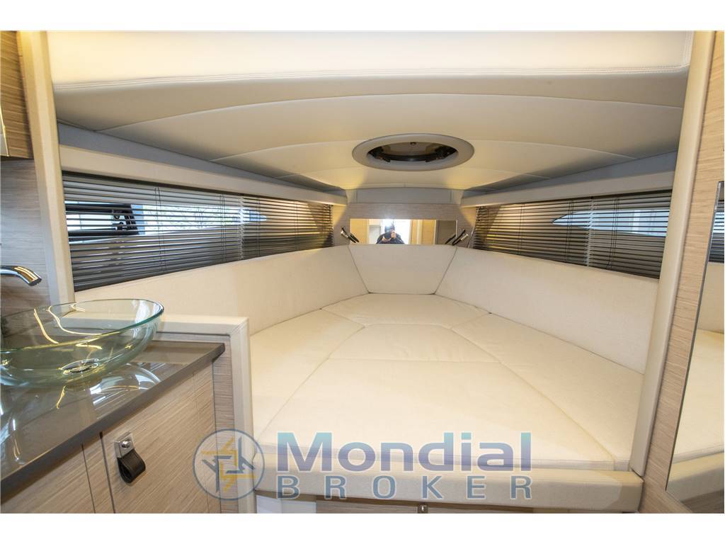Colorazione scafo e struttura parabrezza bianca - parabrezza con apertura frontale - bottazzo perimetrale in acciaio e gomma modello sphaera - pulpito di prua inox - n°4 bitte ormeggio - n°2 bitte a scomparsa - n°1 passouomo - finestrature fiancate - n°3 oblò tondi laterali apribili - n°2 oblò rettangolari laterali apribili - scaletta di poppa a scomparsa - chiusura scaletta di poppa in legno - plancetta di poppa (evoteak) - impianto doccetta pozzetto - n°1 cancelletti di poppa inox - mobile cucina pozzetto completo di lavello, frigorifero 50lt - tavolo pozzetto - schienale dinette pozzetto ribaltabile - gavoni pozzetto - divano pozzetto con sottostanti ripostigli - sedile di guida - luci pozzetto - cuscini prendisole prua - luci di via regolamentari - serbatoio carburante - tappo imbarco carburante - sfiato serbatoio carburante - serbatoio acqua dolce - tappo imbarco acqua dolce - musone prua inox - verricello elettrico con ancora zincata e catena 50mt zincata - comandi a pedale per verricello - cruscotto completo di pannelli, volante, timoneria meccanica, strumentazione motori standard, presa USB, sistema audio musica - bussola - porta accesso cabina scorrevole in plexy - scala ingresso cabina con gradini in legno - rivestimento interno - salone interno con tavolo abbattibile trasformabile in letto - locale per ripostigli ed eventuale installazione II° frigorifero - locale bagno separato completo di lavello, pensili, WC elettrico, doccia - pavimento bagno in legno - pavimento dinette in legno - camera di poppa separata - pavimento camera poppa in moquette - armadio camera di poppa -vaschetta raccolta acqua doccia - impianto di raccolta acque nere - n° 3 batterie - n°3 staccabatterie - apertura elettrica vano motori - caricabatterie/presa220V/cavo banchina 10mt - impianto acqua calda - pompa autoclave -pompa di sentina elettrica - pompa di sentina manuale da pozzetto - filtri supplementari carburante - impianto antincendio automatico - manuale del proprietario - predisposizione aria condizionata - T-Top - Cucina esterna completa - Frigo aggiuntivo interno - Evo teak esterno
