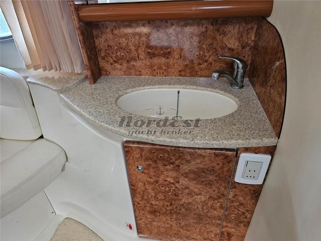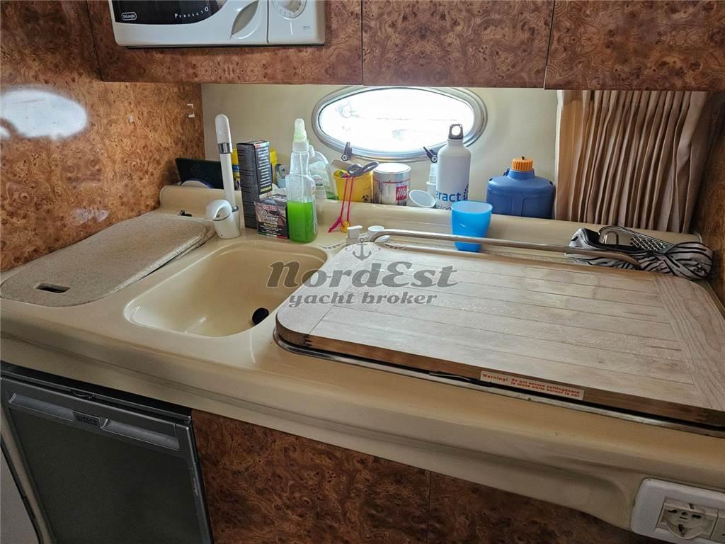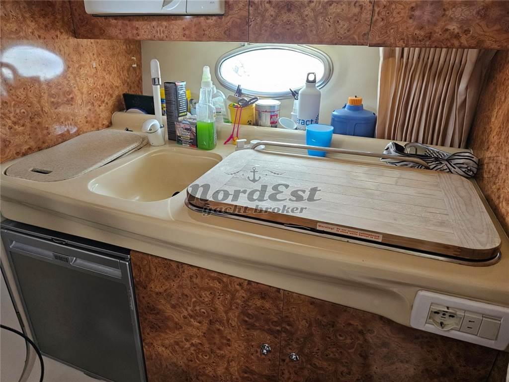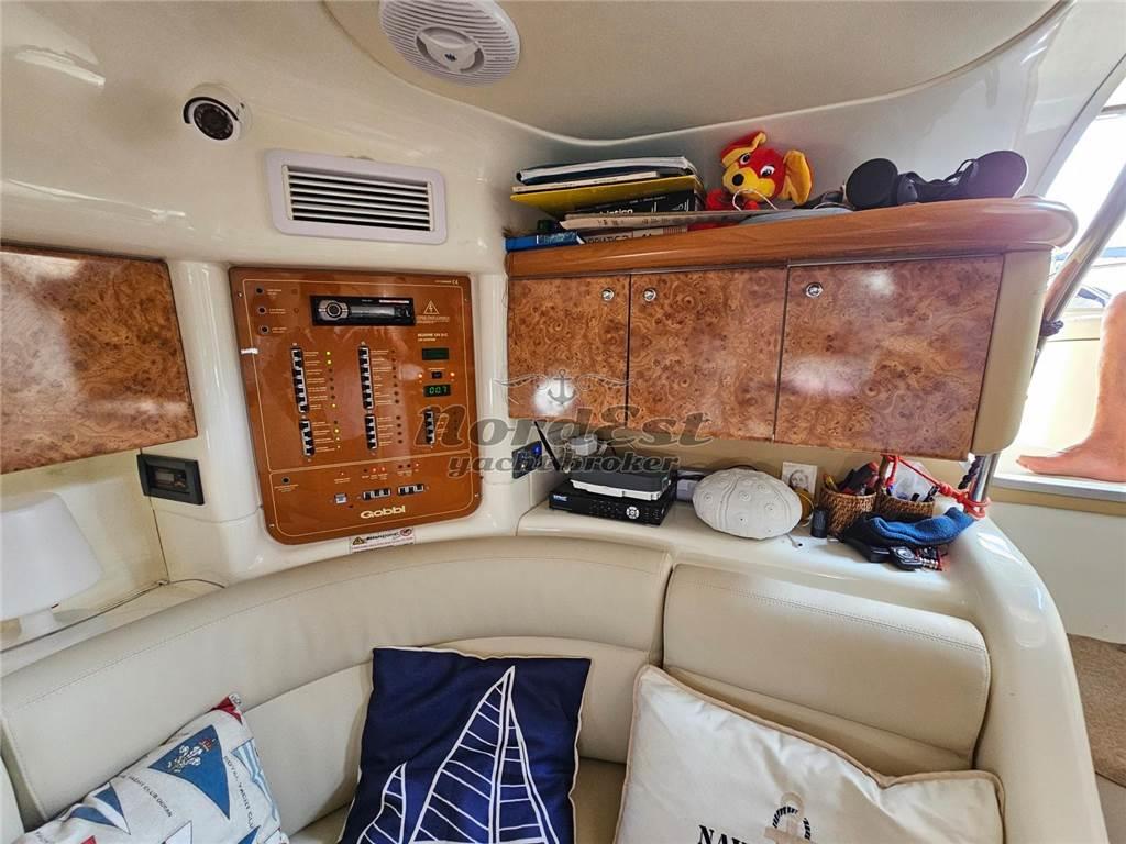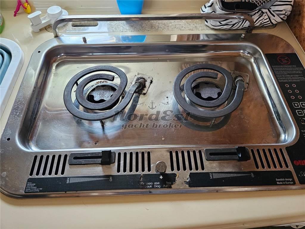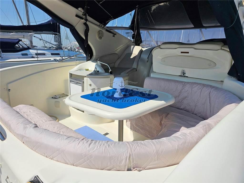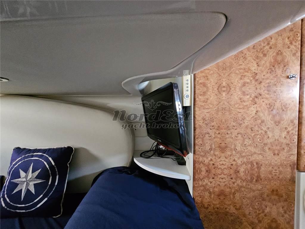 Dotata di aria condizionata, elica di manovra, autopilota, GPS ecoscandaglio di ultima generazione e antenna satellitare. È presente anche una comoda passerella idraulica per l’accesso a bordo. Gli spazi sono ben distribuiti, con due cabine separate, bagno, cucina attrezzata e zona giorno luminosa e accogliente. All’esterno, ampio prendisole e zona relax perfetta per le uscite estive.