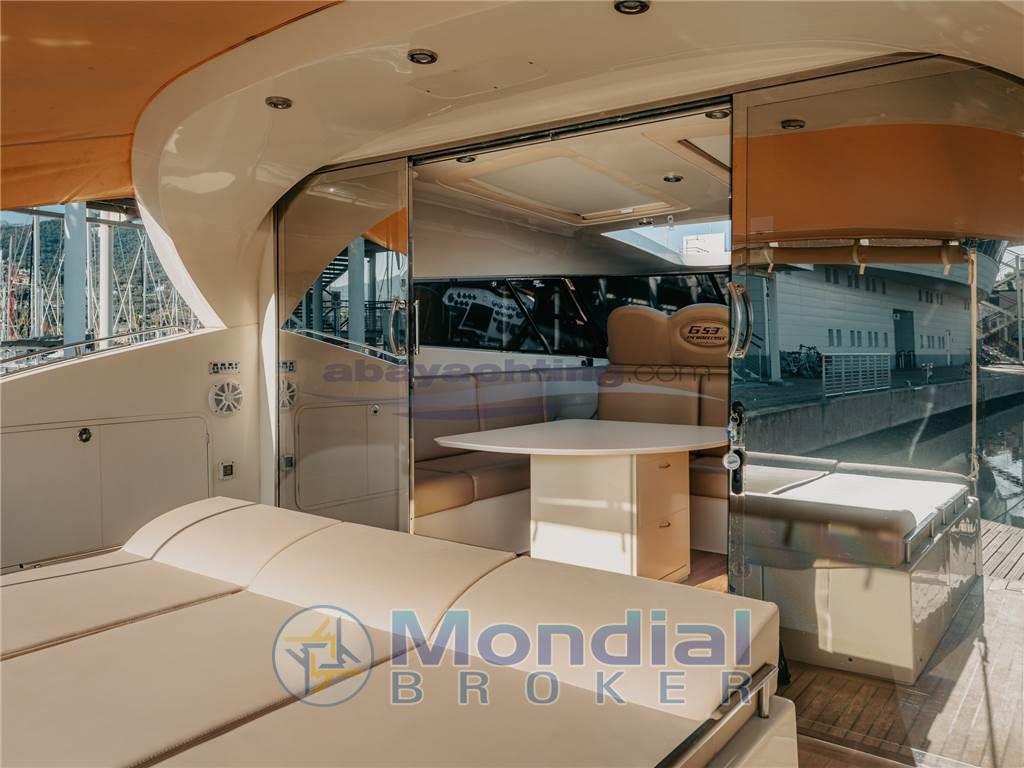 Primatist G53 hard-top ottimamente accessoriata: aria condizionata (caldo/freddo), elica di prua, generatore 220v, piattaforma di poppa elettro-idraulica abbattibile, hard-top con tetto elettrico, tender-garage, passerella idraulica, doppio di winch di tonneggio (prua e poppa), porta di chiusura a poppa, bimini per la copertura del pozzetto, elettronica completa di radar e pilota automatico.