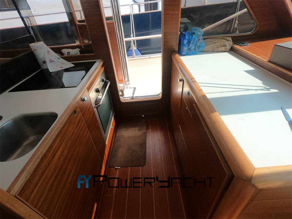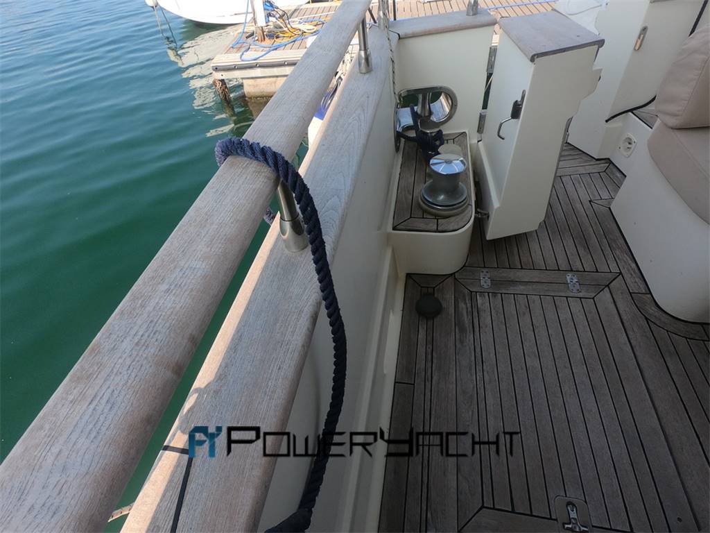 Passarella idraulica telescopia con funzione gru per varo tender, tavolo pozzetto, 2 sedie libere pozzetto, cuscini divano pozzetto, cuscini prendisole prua, ancora in acciaio 80kg, catena di 100 metri, verricello maggiorato con rullo extra per seconda ancora (non usato), verricello per ormeggio a prua, due verricelli di ormeggio a poppa (sinistra e destra), pozzetto e passaggi laterali in teak, capo di banda e corrimano in teak, scala bagno, dotazione di sicurezza come per RINA