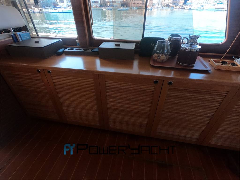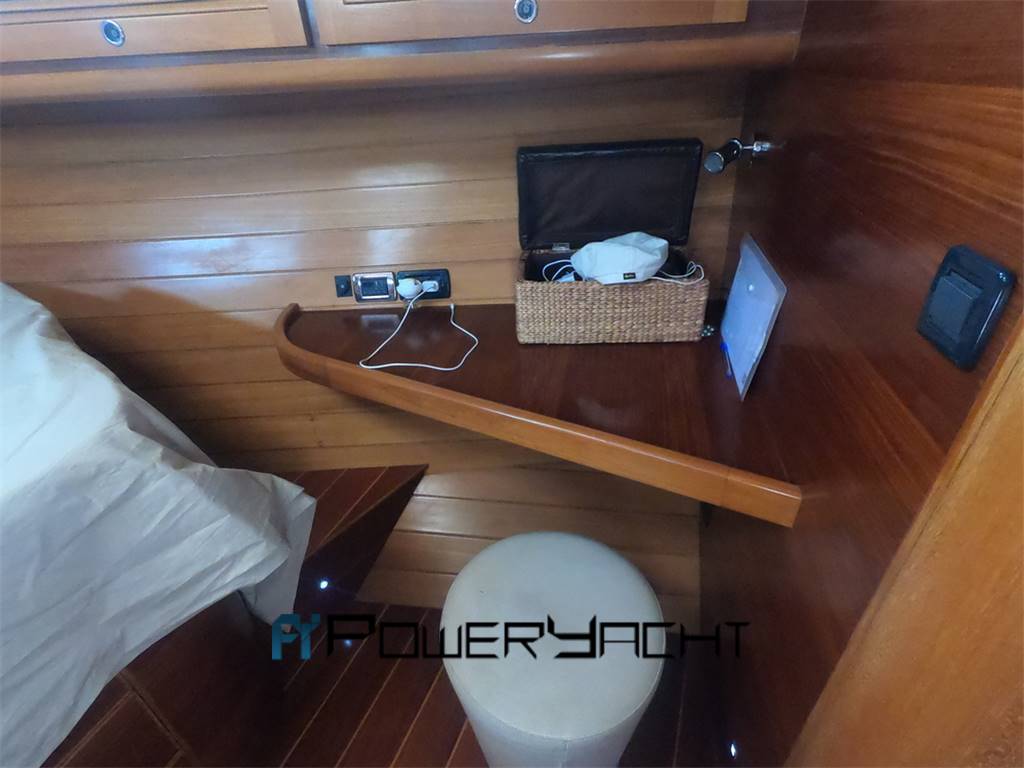Strumentazione motori e di navigazione completa, GPS/plotter Raymarine, radar Raymarine, Autopilota Raymarine, VHF Raymarine, eco-scandaglio, flap idraulici Bennett, stabilizzatori a pinna Wesmar, elica di prua, elica di poppa.