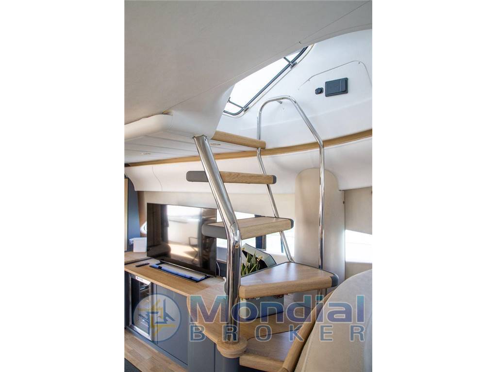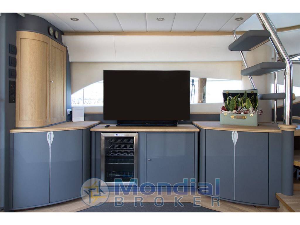 Ha un pacchetto di aggiornamento del 2022 con TV a scomparsa nel salone, gru sul flybridge oltre alla gru a poppa.
