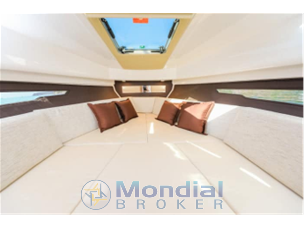 Con cabine a prua e a poppa, la dinette (trasformabile 2 posti letto),un elegante pannello di controllo, tetto apribile elettricamente ed arredi di alta qualità.