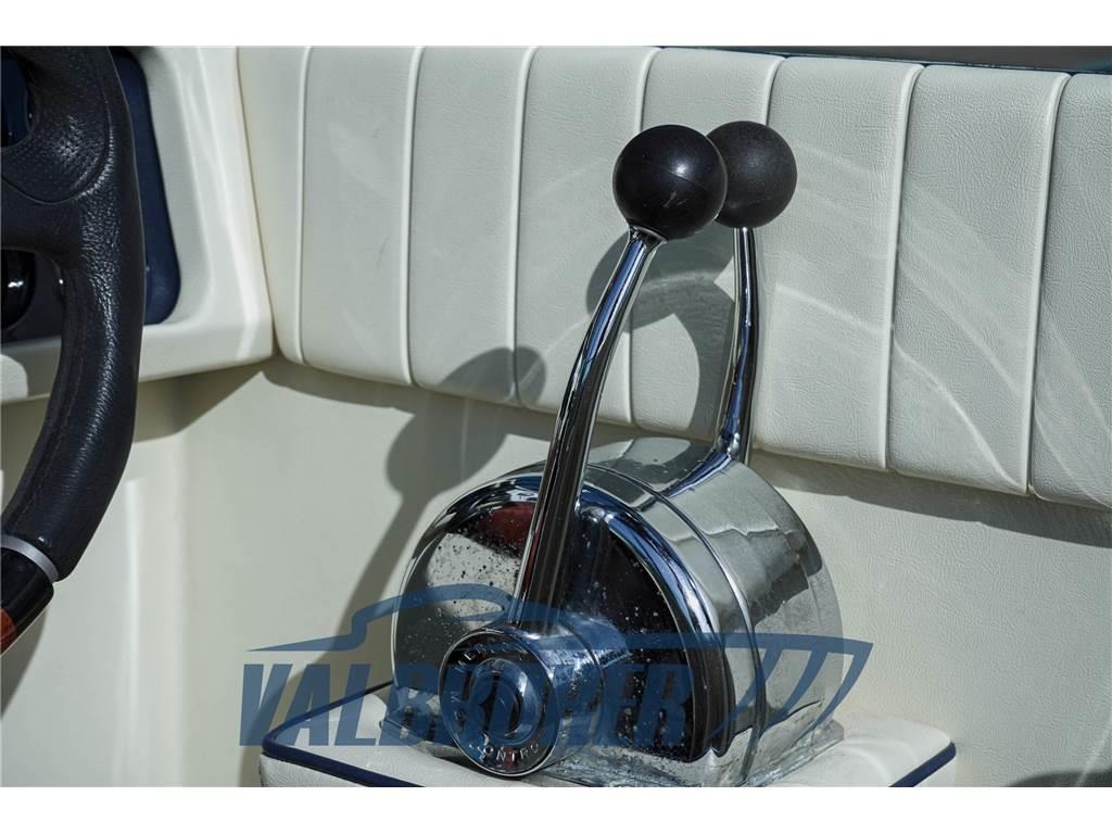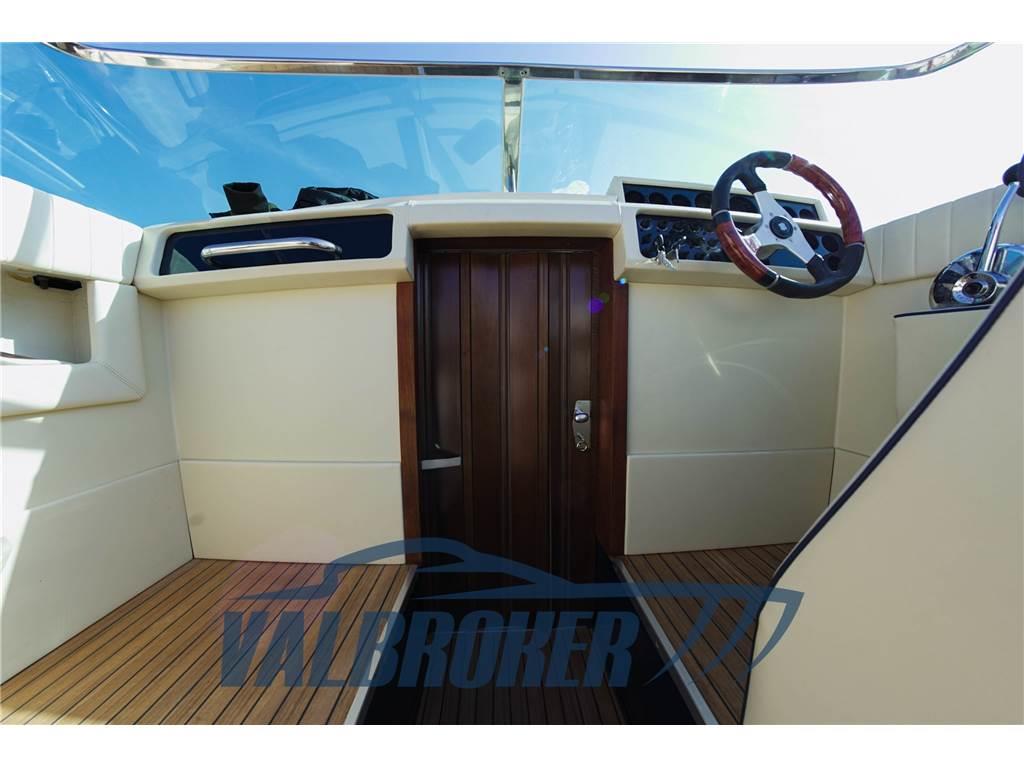 Equipaggiato con 2x228 HP Mercury entrofuoribordo benzina. Eseguito un refit totale tra il 2023 e il 2024: nuova tappezzeria piping blu, plancetta, pozzetto e cabina in teak, stereo Fusion, motori e trasmissioni sbarcati, smontati e revisionati a zero ore Mercury ufficiale lago di Como. Chiglia tirata a zero, applicata antivegetativa nera. Murate verniciate in blu, vano motore e sentina riverniciati. Porta legno a soffietto cabina nuova.
