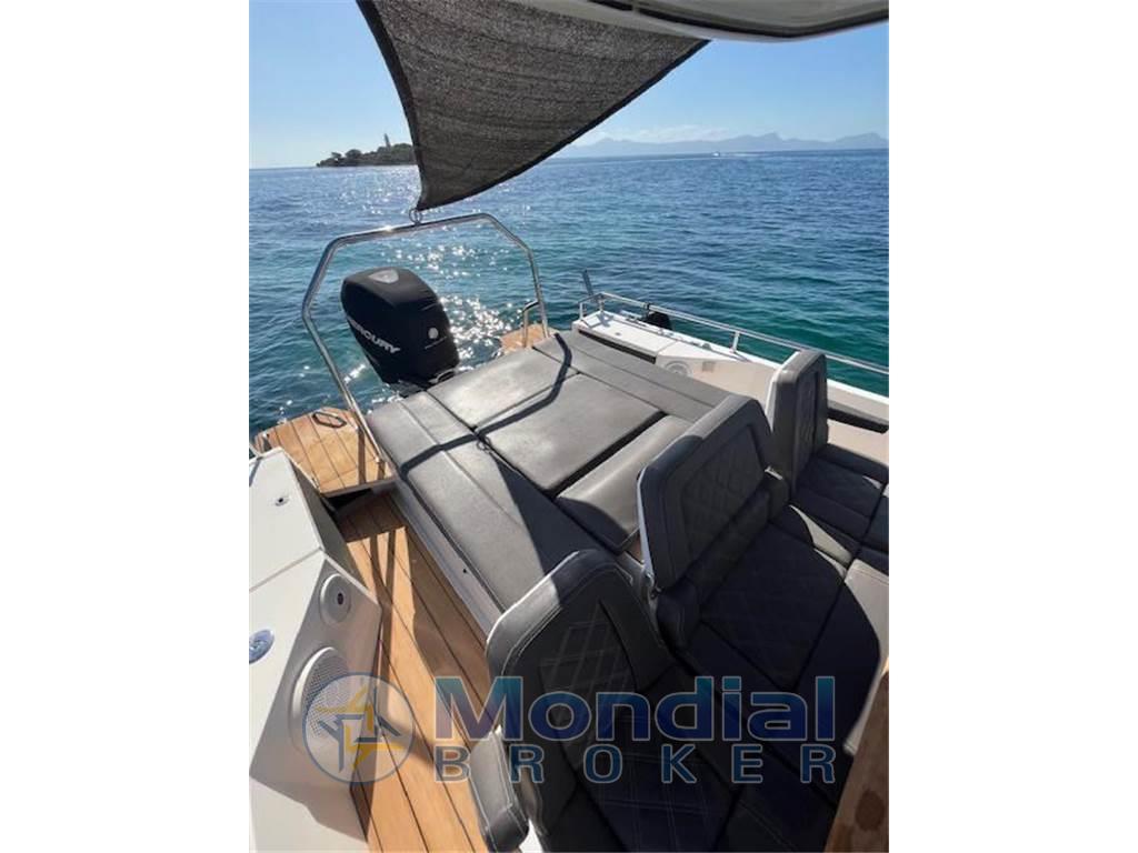 Ancora (INOX 7,5kg), Autoclave (Marco UP3E (controllo elettronico)), Auto-Trim (Trim Tabs con Joystick), Doccia esterna (Whale Twister a scomparsa), Elica di prua - bow thruster (Side Power SE40/125S2), Flap elettrici (Trim Tabs con Joystick), Gancio Traino per Sci Nautico (Roll-Bar in acciaio inox), Lavandino nel Pozzetto, Luci di cortesia, Piattaforma (doppie spiaggette laterali con (1) scaletta bagno intgrata con maniglioni in acciaio inox), Pompa di sentina automatica, Salpa Ancore Elettrico (Quick 600W), Scaletta da bagno (inox con maniglioni), Tavolo pozzetto (pozzetto prua), 2 Tientibene con cancelletti (protezioni fisse inox per motori fuoribordo), T-Top.