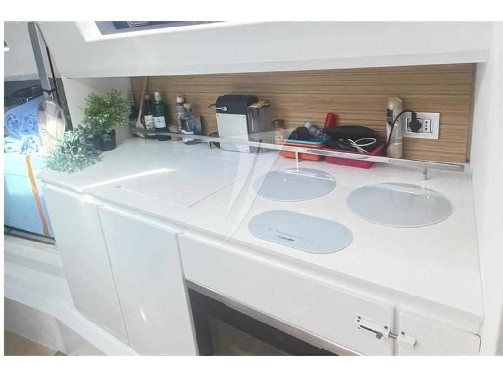 Fornello (induzione), 2 Frigorifero interno (Isotherm 65l/42l), ICE Maker (Isotherm), Microonde, Winecooler.