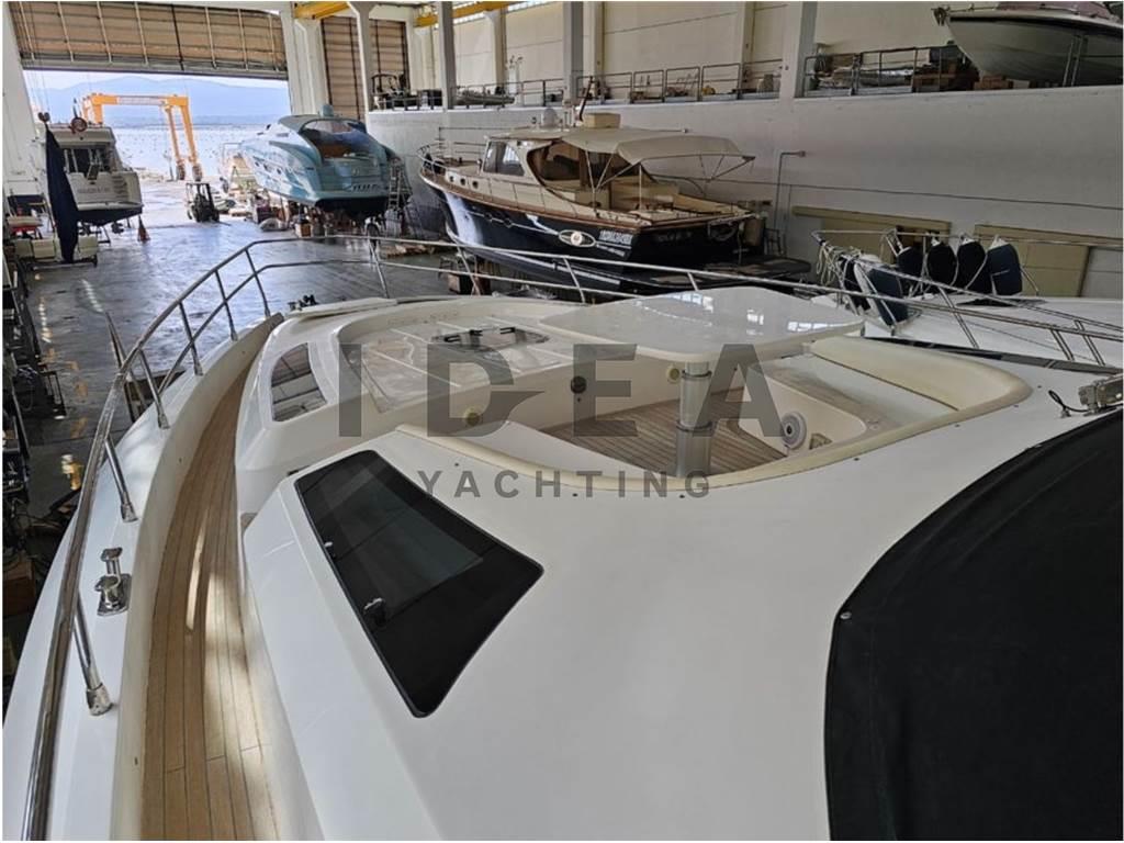 Allarme motore, Allarme sentina, Camminamenti laterali in teak, 2 Caricabatterie, Doccia esterna, Elica di poppa - stern thruster, Elica di prua - bow thruster, Faro orientabile, Flap elettrici, Garage per tender, Hard top, Impianto antincendio, Indicatori Flaps, Lavaggio catena, Luci di cortesia, Luci subacquee, Passerella (Hydraulic telescopic), Piattaforma, 5 Pompa di sentina automatica, 2 Pompa di sentina elettrica, Porta ingresso, Pozzetto Teak, Presa 220V banchina, Presa acqua banchina, Rollbar, Salpa Ancore Elettrico, Scaletta da bagno, Tavolo pozzetto (Hydraulic), Tender, 2 Winch tonneggio di poppa, Winch tonneggio di prua.