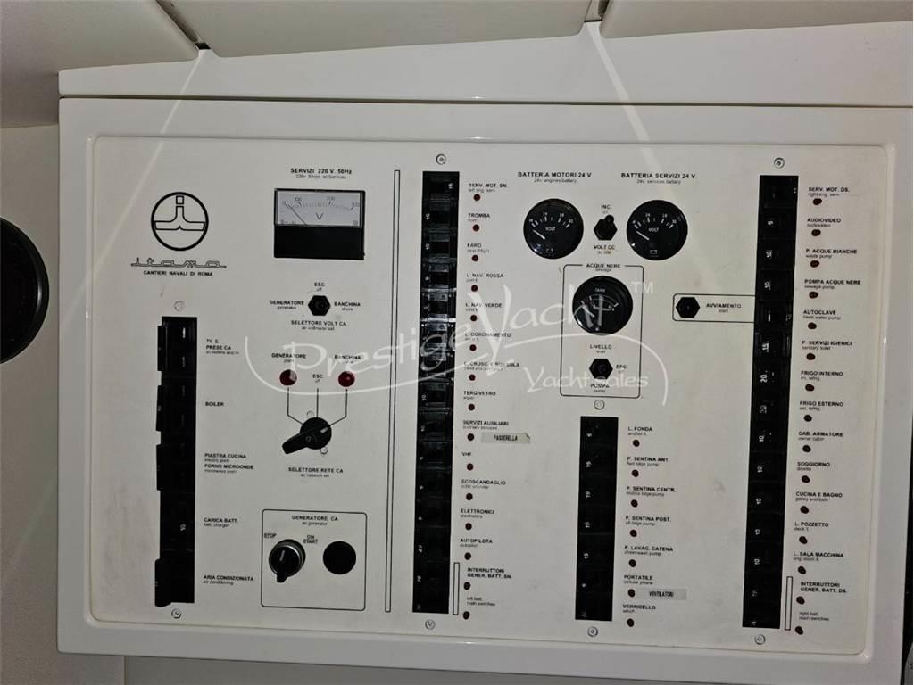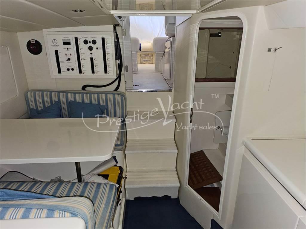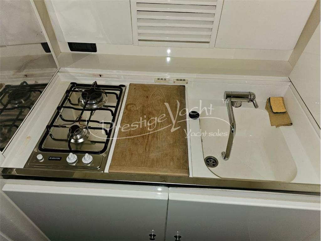 Allarme motore, Autoclave, Caricabatterie, Doccia esterna, Impianto antincendio, Luci di cortesia, Passerella (idraulica), Piattaforma, 3 Pompa di sentina automatica, Pompa di sentina manuale, Porta di ingresso, Presa 220V banchina, Salpa ancora elettrico, Scaletta da bagno, Tavolo in pozzetto Cucina, Frigorifero esterno, Frigorifero interno, Microonde Boiler, Prese interne 12V, Prese interne 220V, Wc marino elettrico Altoparlanti, Stereo Bussola, Contamiglia, Ecoscandaglio, GPS, Pilota automatico, Plotter, Radio VHF Bimini, Cuscineria di poppa, Cuscineria di prua, Cuscineria pozzetto, Telo copri consolle, Tendalino (Poppa)