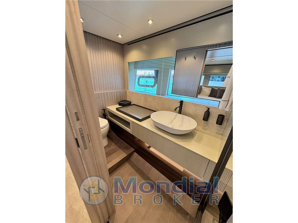 Sul ponte principale, invece, la barca si apre in un grande salone con cucina: un ambiente luminoso e contemporaneo, progettato per vivere la convivialità in ogni momento della giornata. Le zone living e dining sono fluide e accoglienti, ideali per pranzi a bordo, aperitivi al tramonto e relax in navigazione, con un’atmosfera sempre elegante e funzionale.
