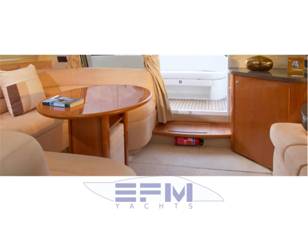 - Accesso al Fly dal pozzetto a mezzo scala in vetroresina con gradini in teak - Allarme ottico e acustico motori - Antenna Tv Glomex e impianto TV