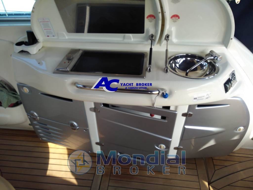 Generatore da 3,5 Dynamic, aria condizionata caldo/freddo, passerella idraulica Besenzoni, boiler, autoclave, verricello elettrico, pozzetto e pedana di poppa in teak, scaletta bagno, doccetta esterna, cuscineria prendisole, tendalini, telo camper, mobile esterno con frigo-lavello-piastra elettrica, frigo interno, forno microonde