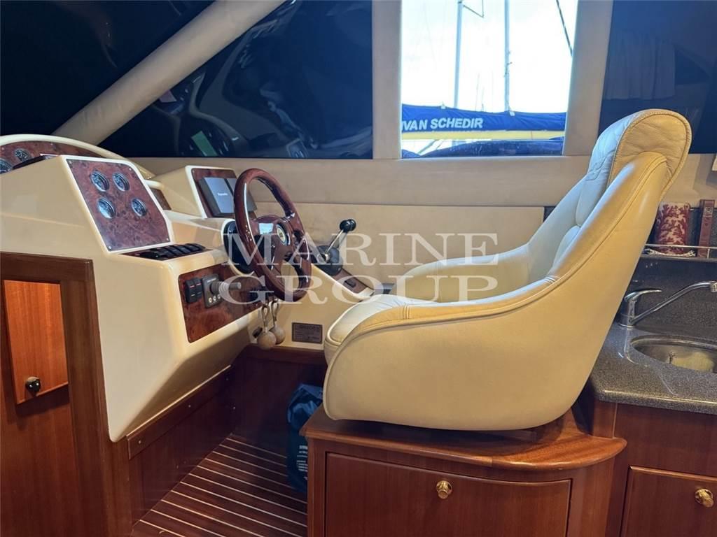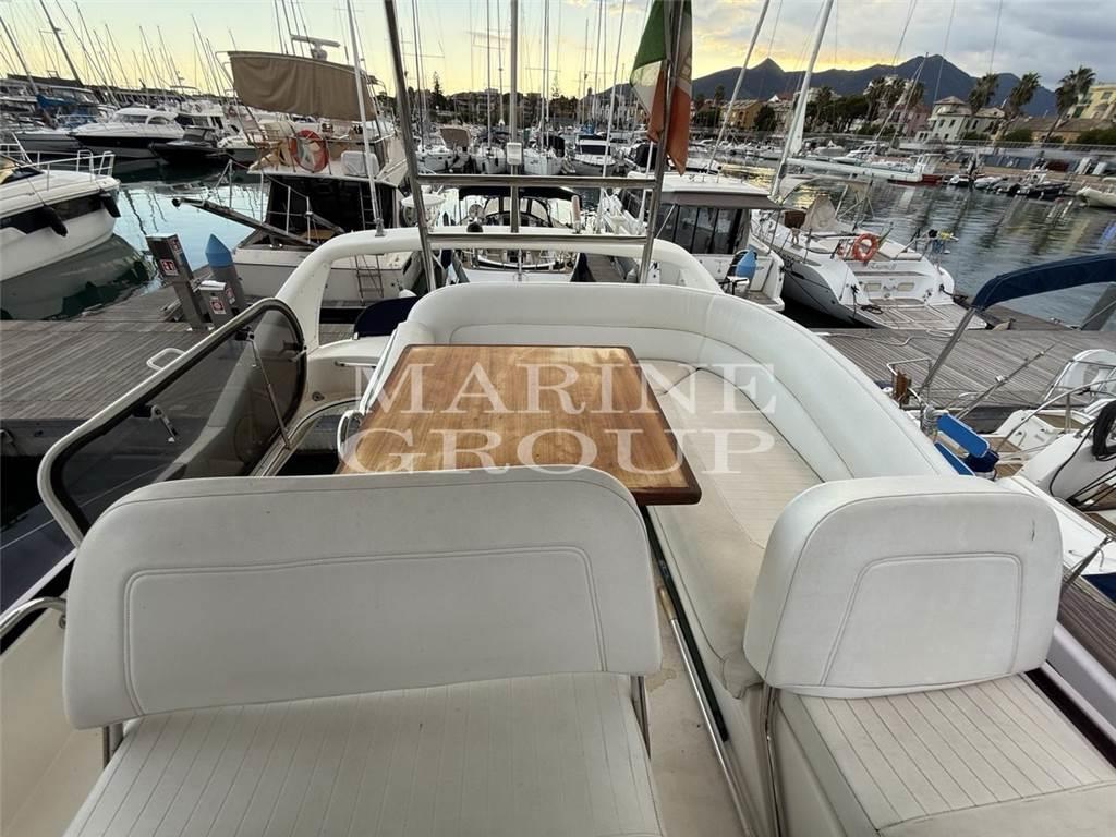 Aria condizionata, Boiler, Copripozzetto, Cuscineria completa, Cuscineria di poppa, Cuscineria di prua, Cuscineria fly, Cuscineria Pozzetto, Frigorifero esterno, Frigorifero interno, Impianto TV, Inverter, Pavimento interno in legno, Piastra in vetroceramica, Prese interne 12v, Prese interne 220v, Radio AM/FM, Riscaldamento (Webasto), Stereo, Teli chiusura T-Top, Angolo barra, Antenna radar, Caricabatterie, Comando motori elettronico, Contametri catena, Doccia esterna, Doppia timoneria, Faro orientabile, Flap elettrici, Motore ausiliario, Passerella, Piattaforma, Ponte in teak, Porta ingresso, Pozzetto Teak, Presa 220V banchina, Salpa Ancore Elettrico, Scaletta da bagno, T-Top, Winch tonneggio di prua