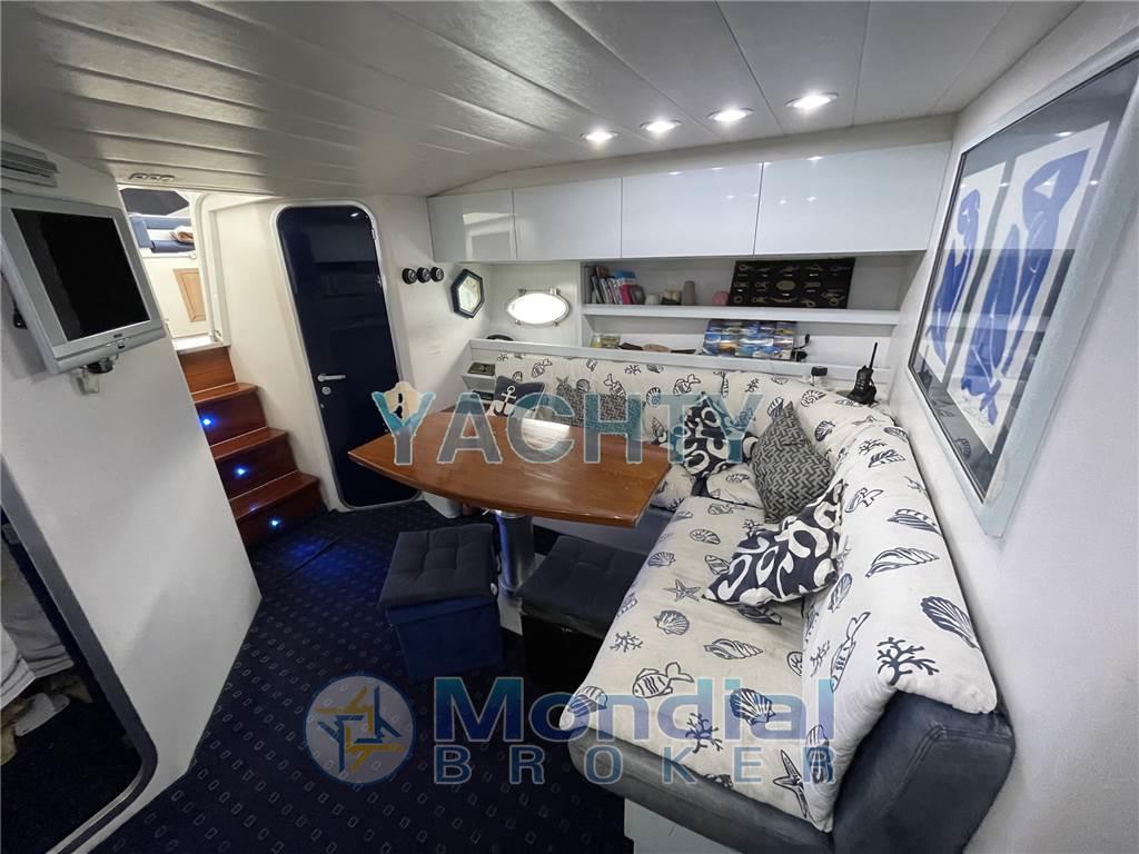 2024 - Boccole nuove e quattro scambiatori puliti a pressione. Teak coperta 2020, impianti idraulici nuovi 2017 compreso rubinetterie 2024, scambiatori, allineamento assi e boccole nuove 2022, carena a zero 2024, cristal e revisione tendalini telo copertura totale invernale 2024, batterie servizi 2024, revisione tutti frigoriferi 2023, sostituzione giranti complete di alberini interni, tutte lampade LED, 5 luci subacquee 2024 sostituzione teak passerella, 2024 revisione pistoni flap e passerella con rifacimento stelo del pistone di sfilo, 2023 componenti passerella sostituiti da teflon ad acciaio.