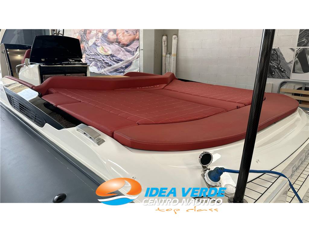 Il SACS Strider 13 è un RIB di lusso che combina performance elevate e comfort superiore. Con linee aggressive e design moderno, offre una navigazione stabile e veloce grazie alla carena Deep V e all’ampia motorizzazione. Gli spazi esterni, arricchiti da flexiteek completo, hard top in VTR con struttura inox e luci a LED sia di cortesia sia subacquee, garantiscono funzionalità ed estetica. La poppa è attrezzata con tavolo trasformabile in prendisole, tenda con pali in carbonio e gavone elettroidraulico, ideali per momenti di relax e convivialità in mare.
