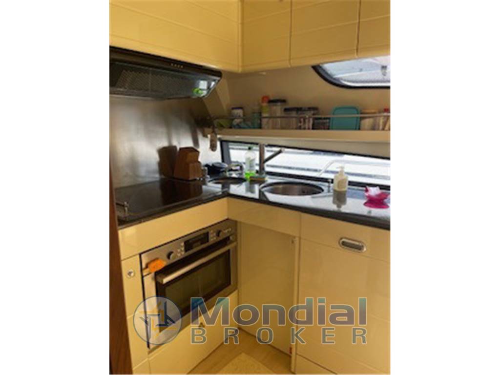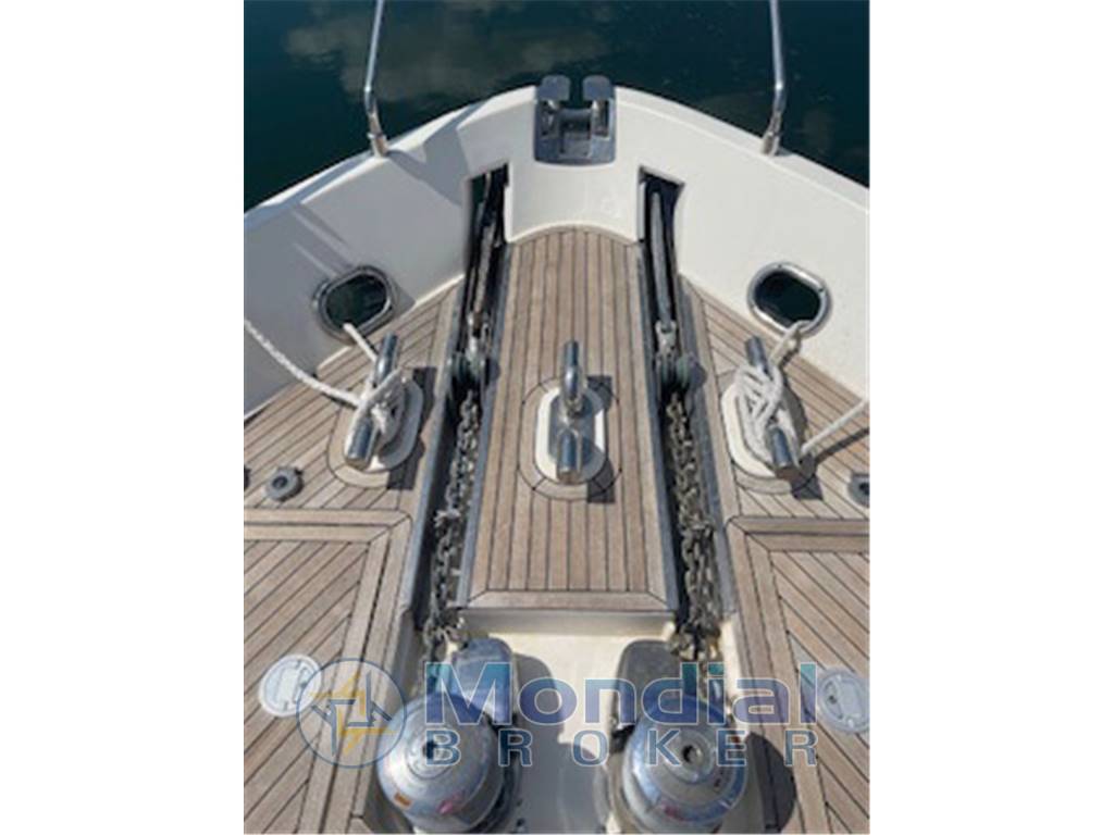 Tavolo pozzetto in teak allungabile fino a 8 posti (divanetto + 4 sedie), Panca di poppa ribaltabile elettricamente, Lavello a poppa con acqua dolce e salata, 2xDocce pozzetto, Doccia di poppa, Lavello fly, Frigo fly (2025), Gavone di poppa con apertura elettrica, Coperture estive e invernali cuscinerie e posto guida fly, Tendalino parasole a poppa, Norvegese, Tendalino fly con 4 aste acciaio (da baia), Passerella Besenzoni, Scaletta bagno con maniglione acciaio, 2xAncore (Bruce 50kg e Delta) e catene maggiorate (2x100x14), Contacatena ancora dx, Gruetta 600kg, Fari subacquei a poppa. Nr 2 Zattere per 6 persone.