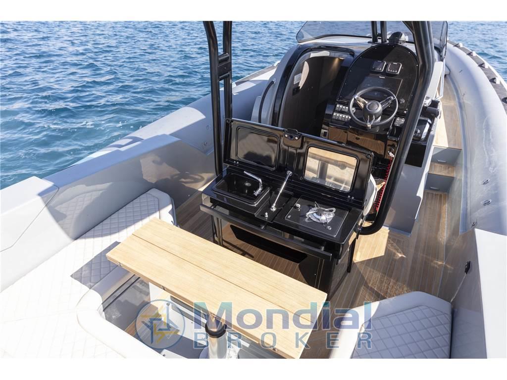 Allarme motore, Ancora, Autoclave, Batterie, Caricabatterie, Doccia esterna, Ecoscandaglio, Elica di prua - bow thruster, GPS (da 12"), Piattaforma, Ponte in teak, Pozzetto Teak, Presa 220V banchina, Salpa Ancore Elettrico, Tavolo pozzetto