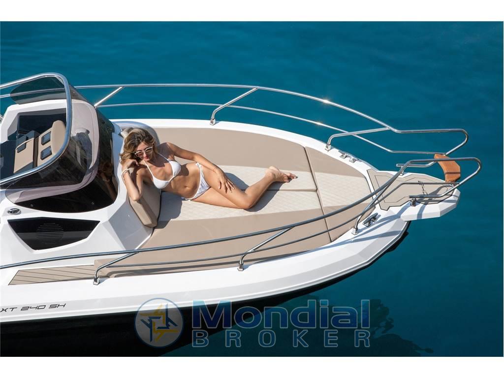 Ranieri International Next 240 SH si presenta mostrando una massiccia solidità sulle onde dovuta all’esclusiva tecnologia di abbinamento di scafo e coperta Suspension Active System, che garantisce vantaggio e comfort alla navigazione.