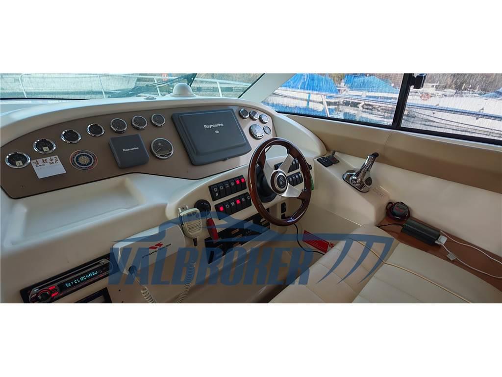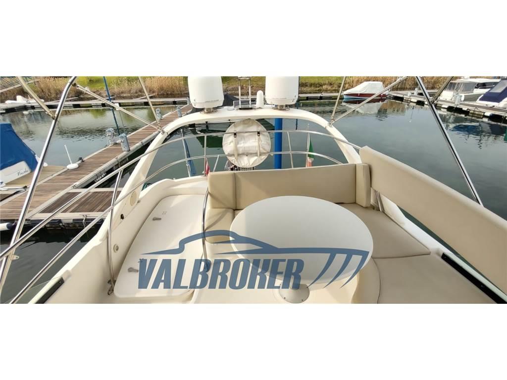 Flybridge da qualche anno sul Lago Maggiore. Eccellenti condizioni, nessun lavoro da eseguire. Seguita professionalmente da tecnico specializzato. Motorizzato 2x Cummins QSB 5.9 in linea d'asse turbo diesel. Sottocoperta dispone di due cabine: una armatoriale prodiera con letto matrimoniale e una per gli ospiti con due letti singoli trasformabili in matrimoniale e due bagni. FULL OPTIONAL: generatore MASE da 6.5 W, aria condizionata caldo/freddo:16.000 btu (salone) 9.000 (camera 1) 9.000 (camera 2), elica di prua, GPS, pilota automatico, piattaforma estesa in teak sintetico nuovo 2024, passerella idraulica Bioinox (centralina e motori nuovi 2016), tender Osculati 2,50 m con motore fuoribordo Johnson. Sono stati spesi più di 30.000 € per il refit negli ultimi anni.