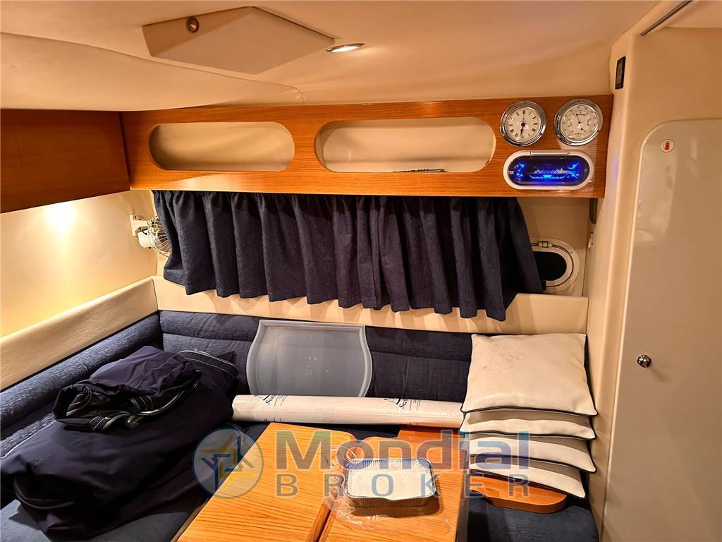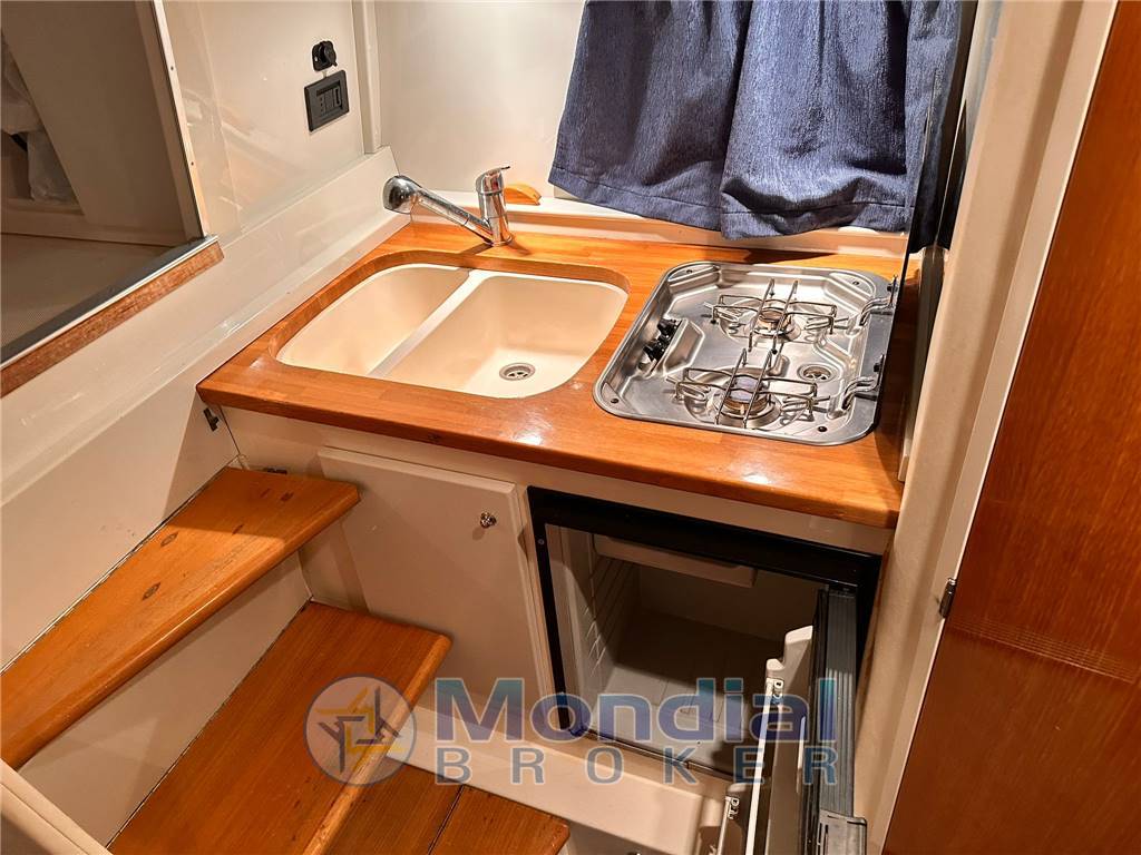 Tendaggi nuovi, Gps nuovo con ecoscandaglio, predisposizione a/c (da sostituire la pompa), Gruppo elettrogeno Mase 3.5 kw, Passarella automatica Besenzoni con doppio telecomando, Tavolo cofano idraulico, Vhf, Boiler, Impianto tv con tv da 22" in dinette, Impianto 220, Cabina armatore, Dinette, Pagliolo interno in teak cabina, Frigo interno ed esterno, Prese 220 esterne, materasso cabina armatoriale nuovo in memory, Impianto stereo, Doccia supplementare nel locale wc, Spazzola tergi, Barca in buono stato, pronto alla boa, commissioni a parte