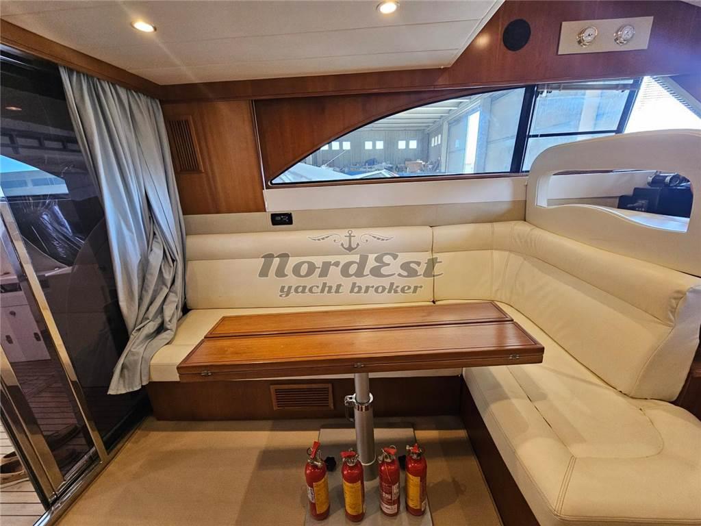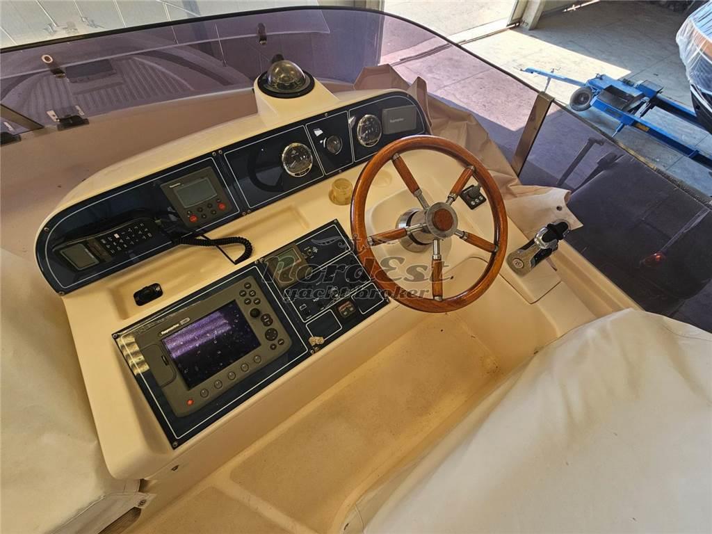 Cayman 42 Fly, versione 3 cabine e 2 servizi. Raffinati interni con finitura satinata e non lucida. Uno degli ultimi modelli costruiti. Motori con solo 450 ore circa. Aria condizionata, generatore ed elica di manovra. Condizioni interne molto buone.