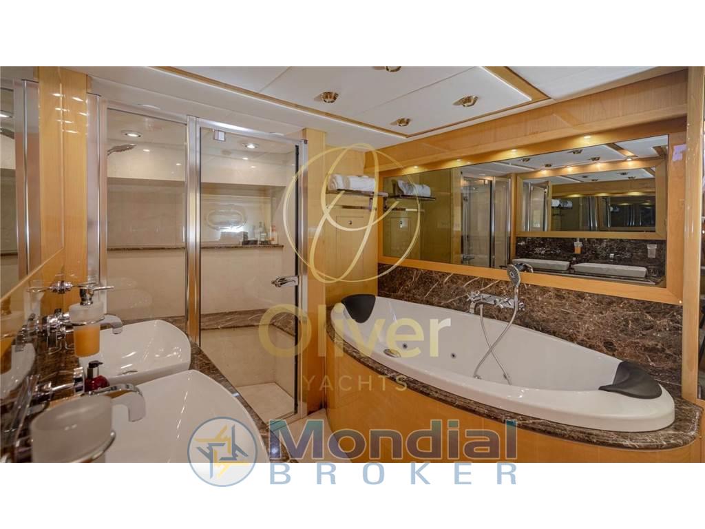 1 Ponte comando, 2 Armatoriale, 2 Doppia in piano, 3 Cabina equipaggio, 1 Toilette con doccia, 1 Dinette, 1 Cucina, 1 Salone, 2 Toilette Equipaggio, 3 Toilette doccia no bidet
